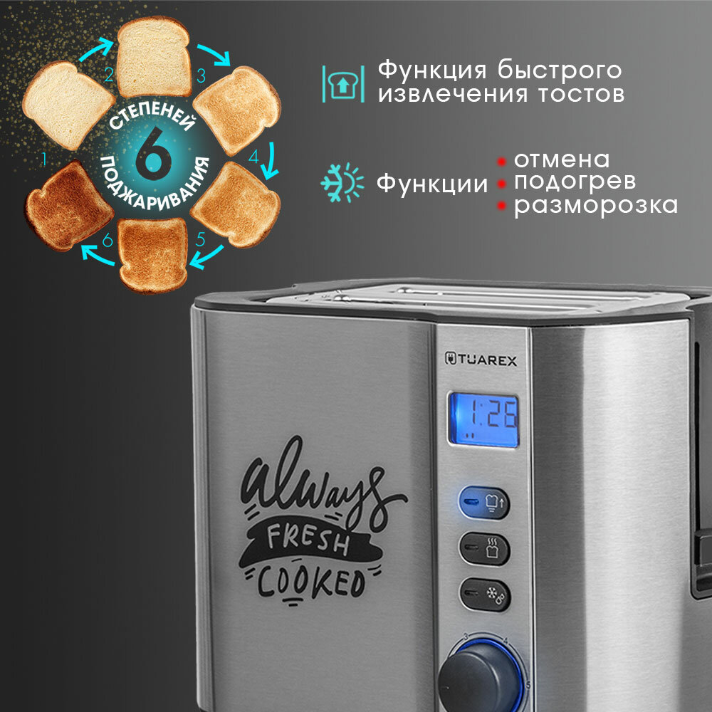 Тостер TUAREX TK-6008, для 2 тостов, 6 режимов обжарки, сенсорный, чёрный