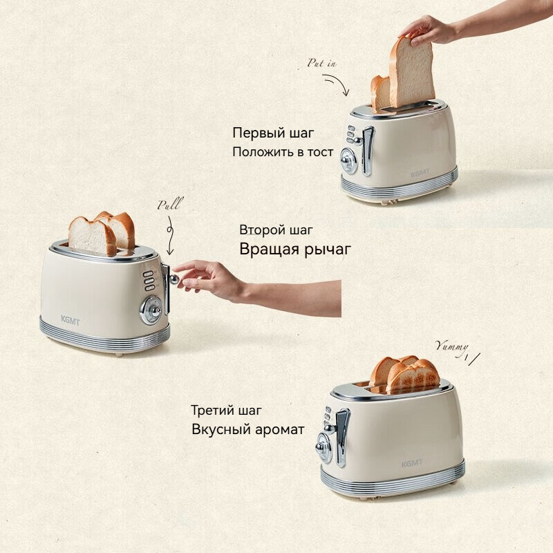 Тостер KGMT, мощность 800 Вт, бежевый, 27*19*19 см, модель: GMT-18D-A интересное: