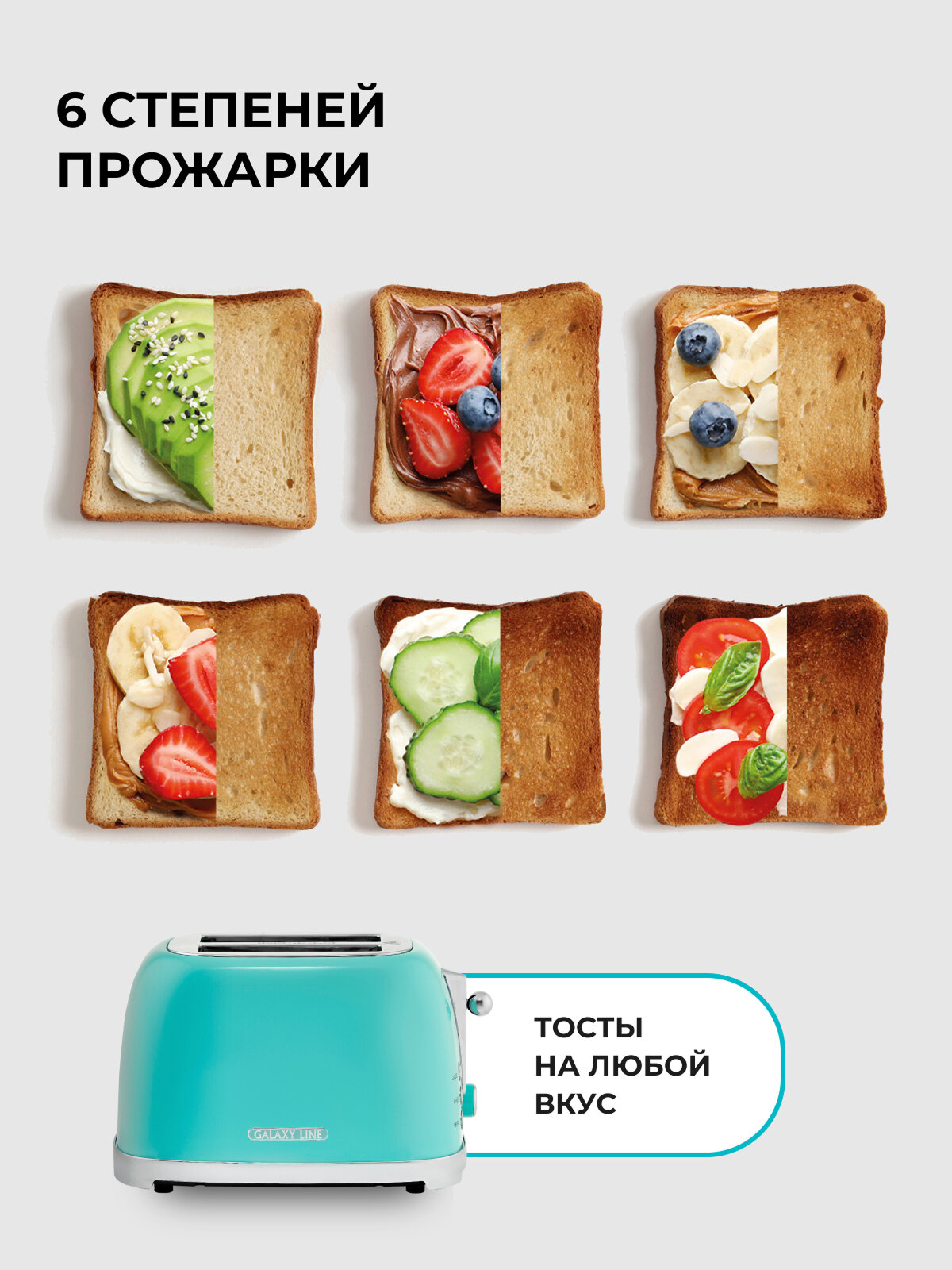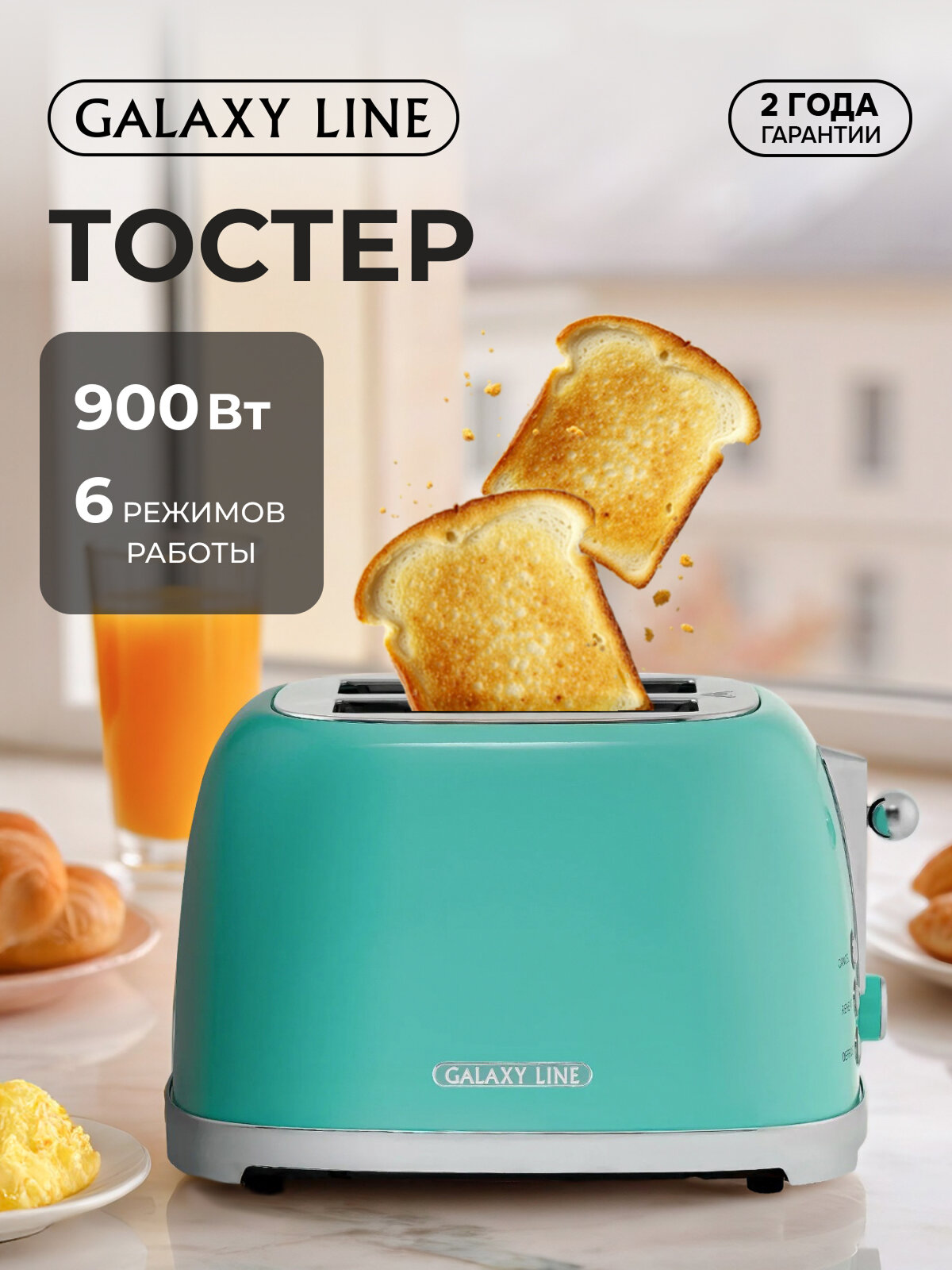 Тостер GALAXY LINE FASHION SHOW GL2917, тиффани, 900Вт, термоизолированный, металл интересное: