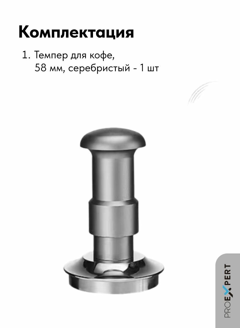 Купить Темпер для кофе нажимной с упором 58 мм, сталь, серебристый