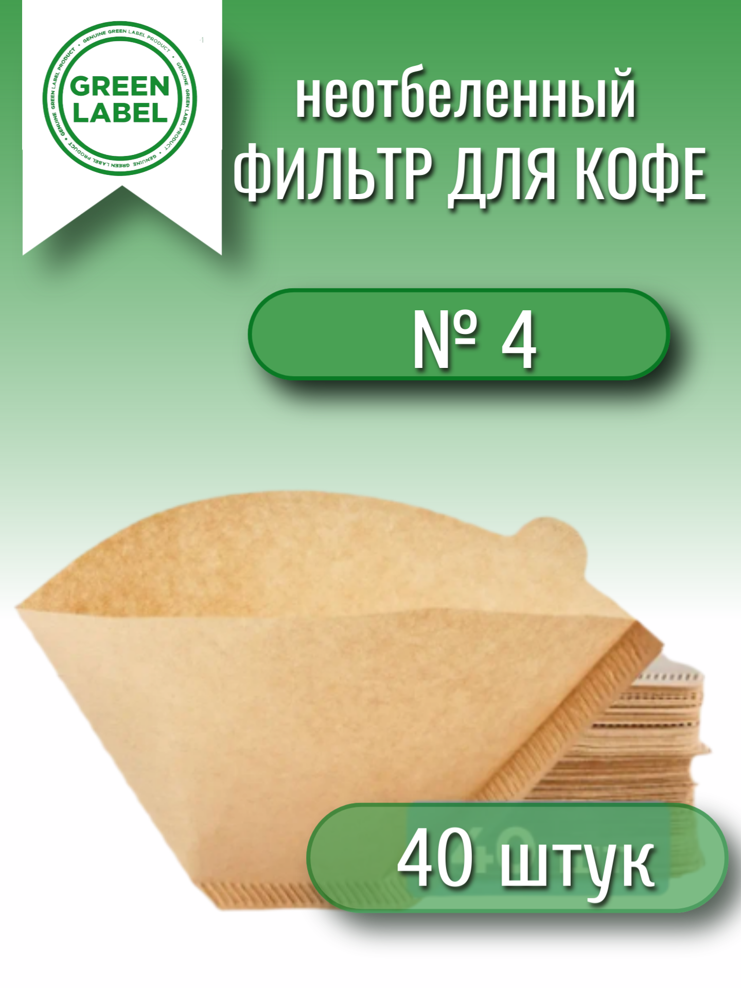 Купить Фильтр бумажный Green Label, для кофеварок №4, неотбеленный, 40 штук