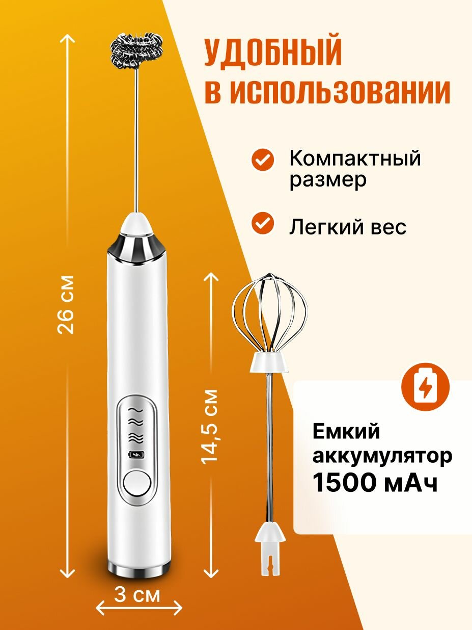 Капучинатор и вспениватель для молока электрический c аккумулятором; белый интересное: