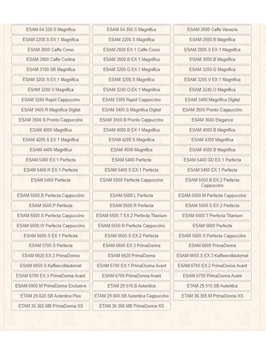 | Модель | ECAM/ETAM/ESAM |