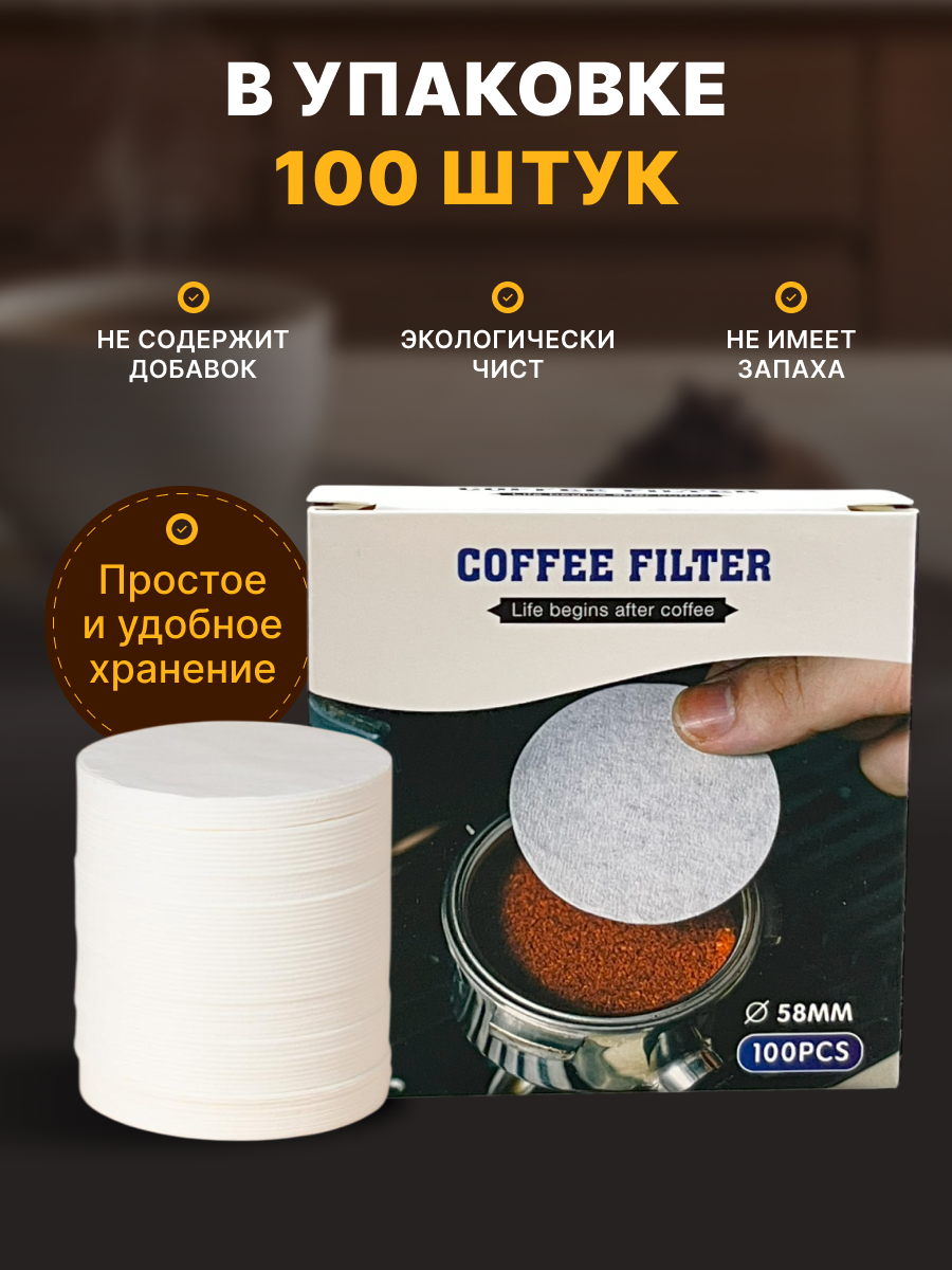 Фильтр для кофеварки, 58мм, бумажный, одноразовый, погружной, 100шт интересное: