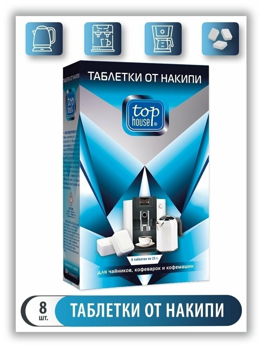 Купить Таблетки от накипи TOP HOUSE для чайников, кофеварок и кофемашин 8 шт * 25 г