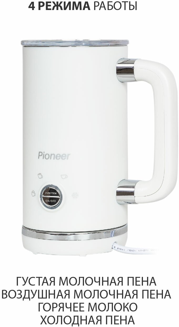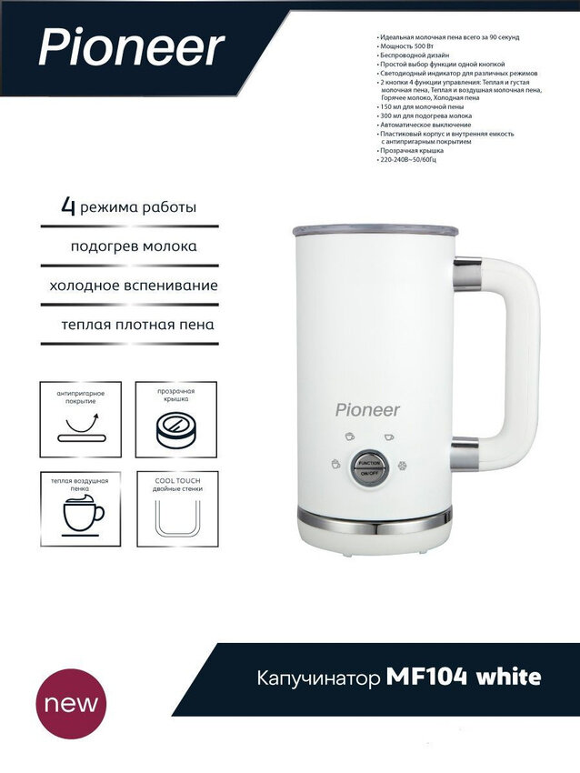 Капучинатор Pioneer MF104 white, 300 мл, двойные стенки Cool Touch, антипригарное покрытие, 4 режима работы, 500 Вт интересное: