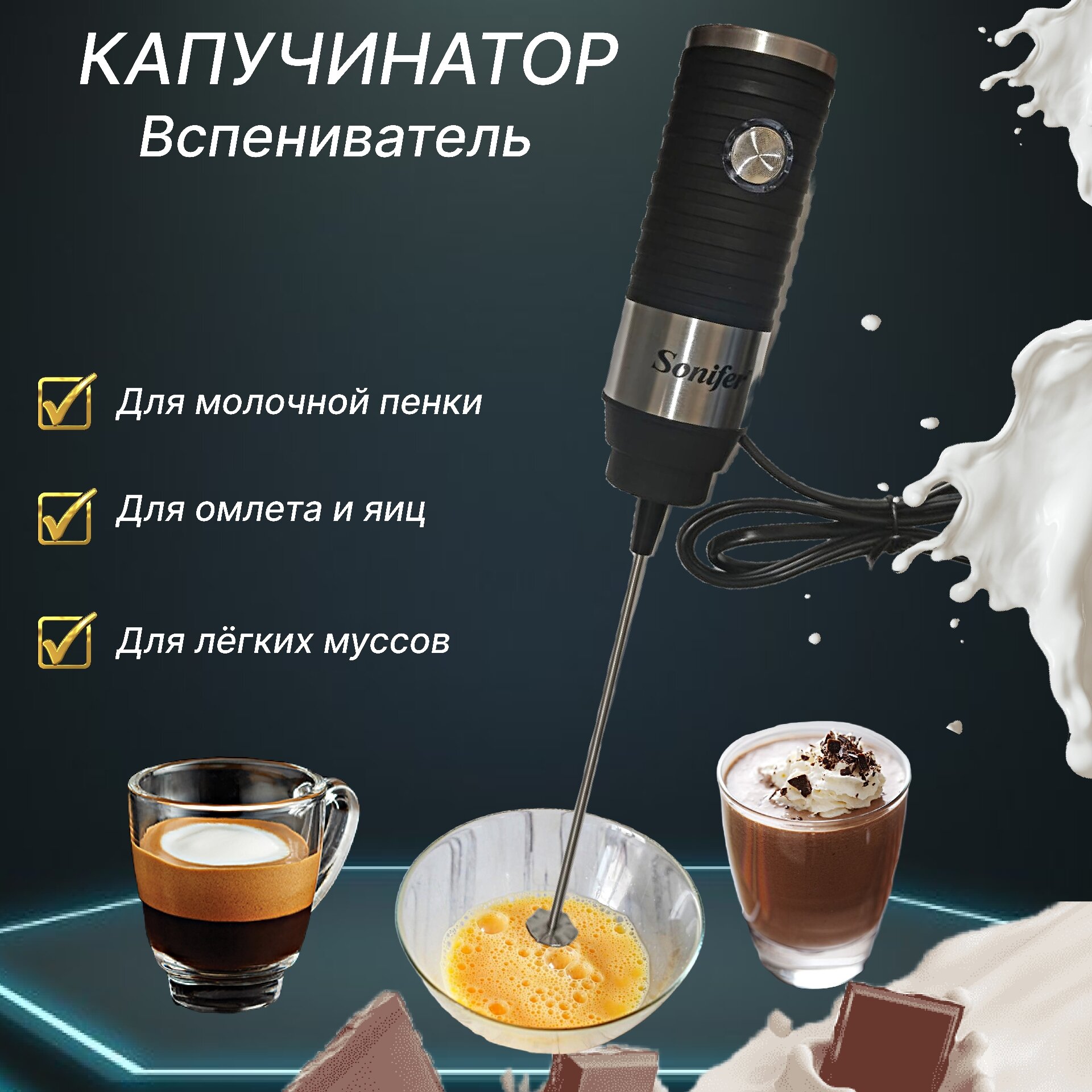 Купить Капучинатор электрический ручной для молока и яиц, 25Вт