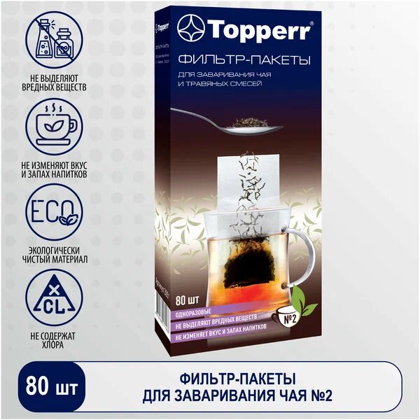 Фильтр-пакеты TOPPERR для чая №2 80 шт интересное: