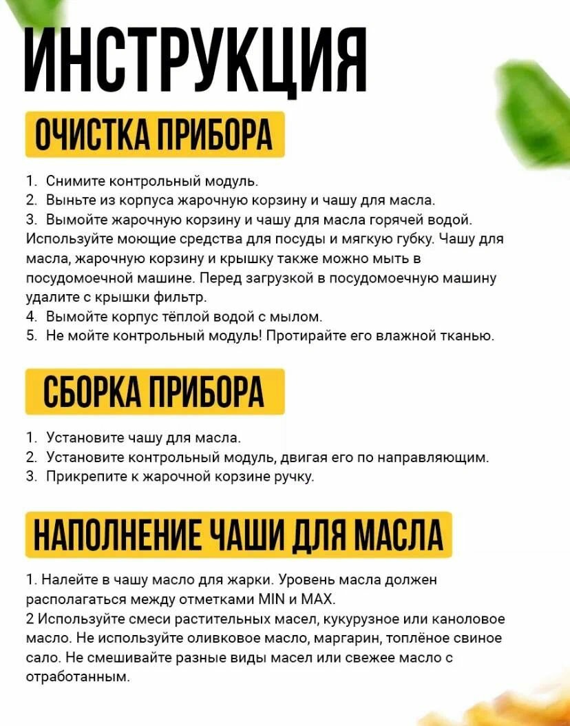 | Комплектация | Фритюрница, инструкция, коробка |