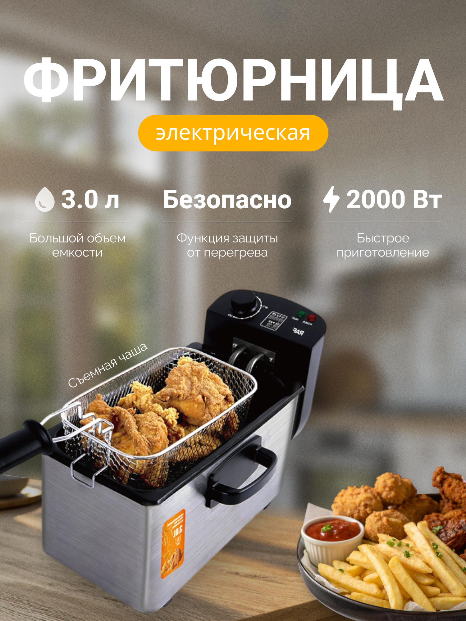 Электрическая фритюрница для домашнего использования, R.5299 2000 Вт интересное: