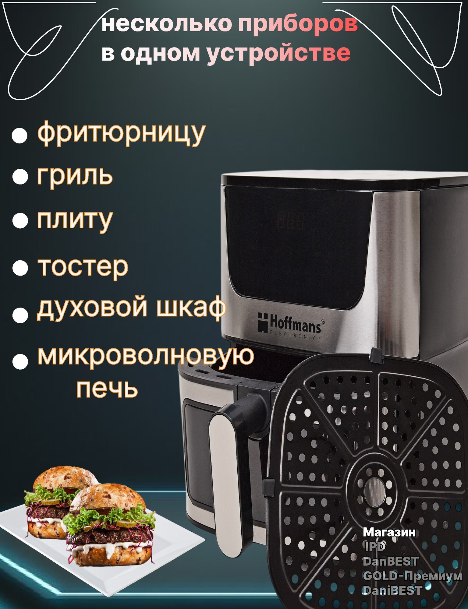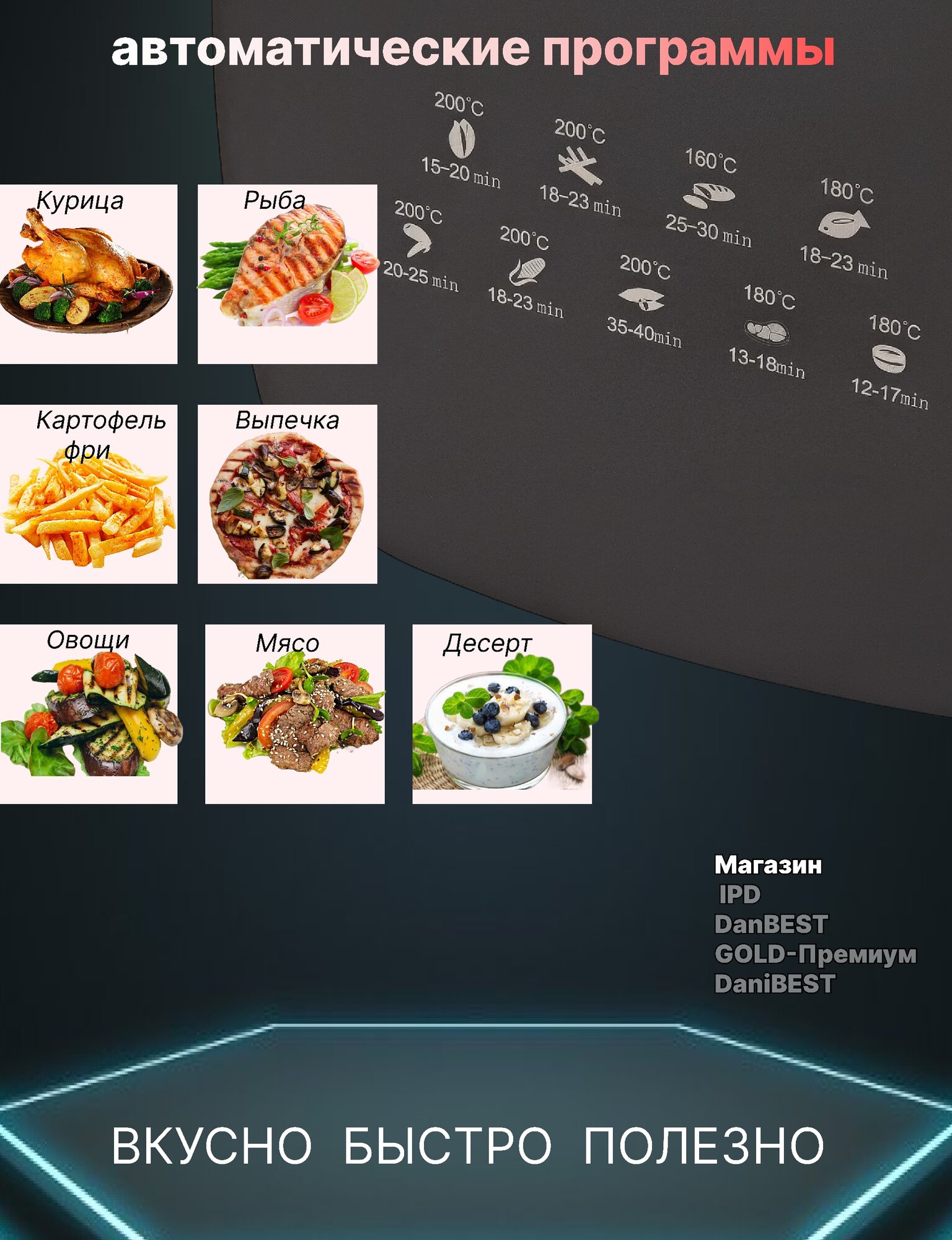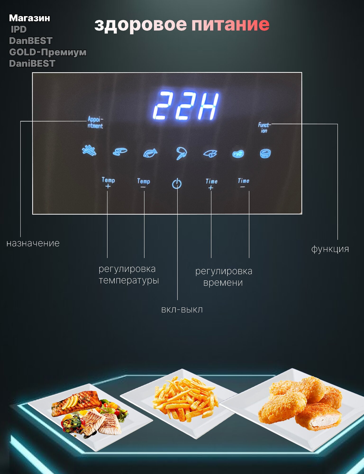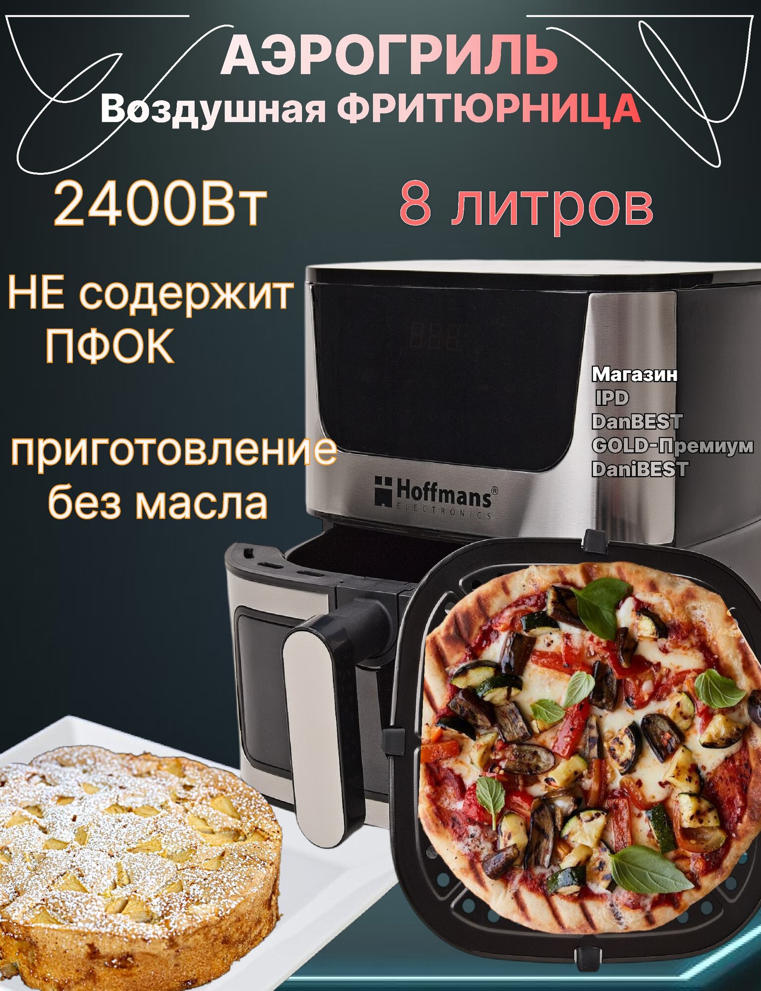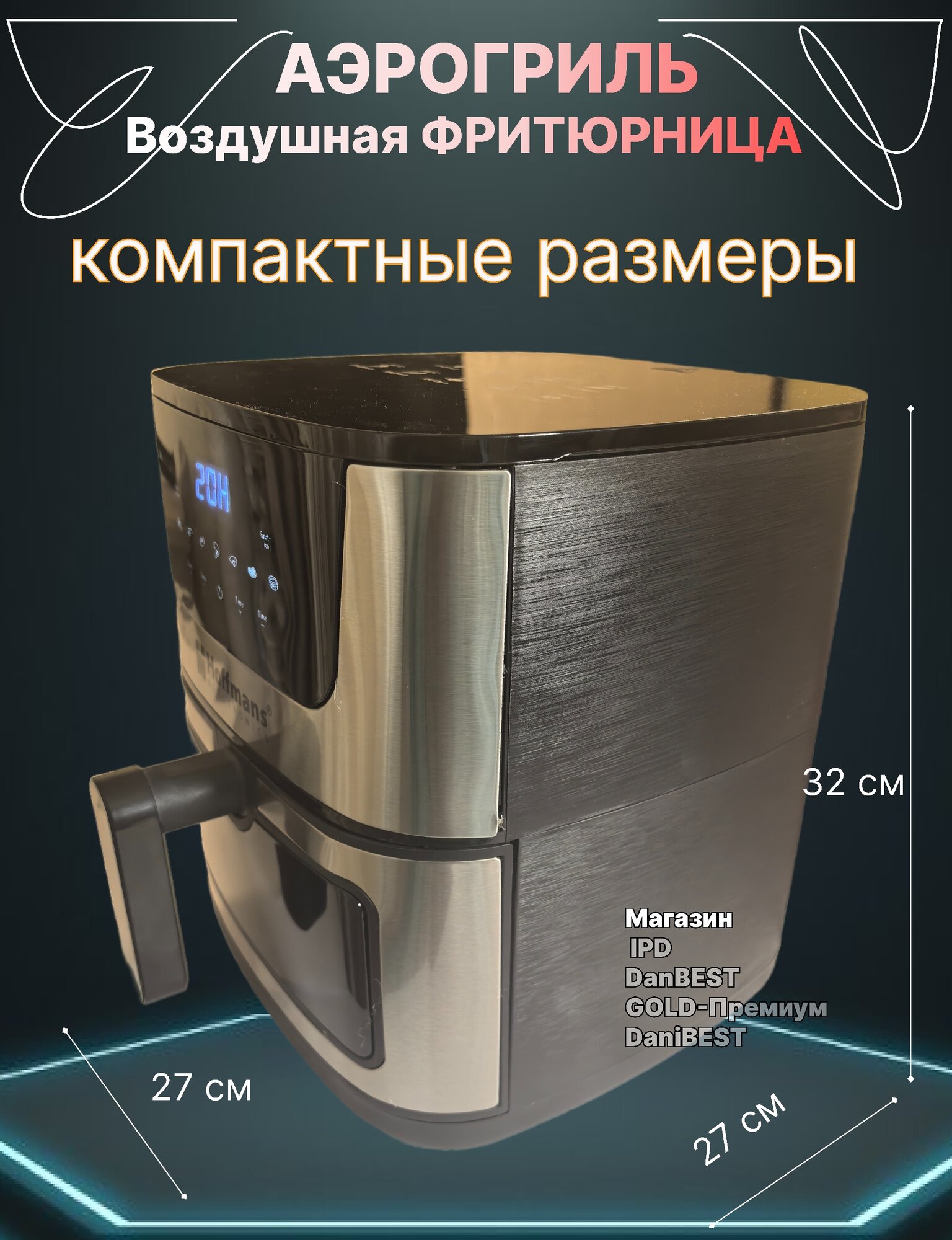 Фритюрница аэрогриль / мини печь 2400 Вт сенсорный дисплей, 8 литров интересное: