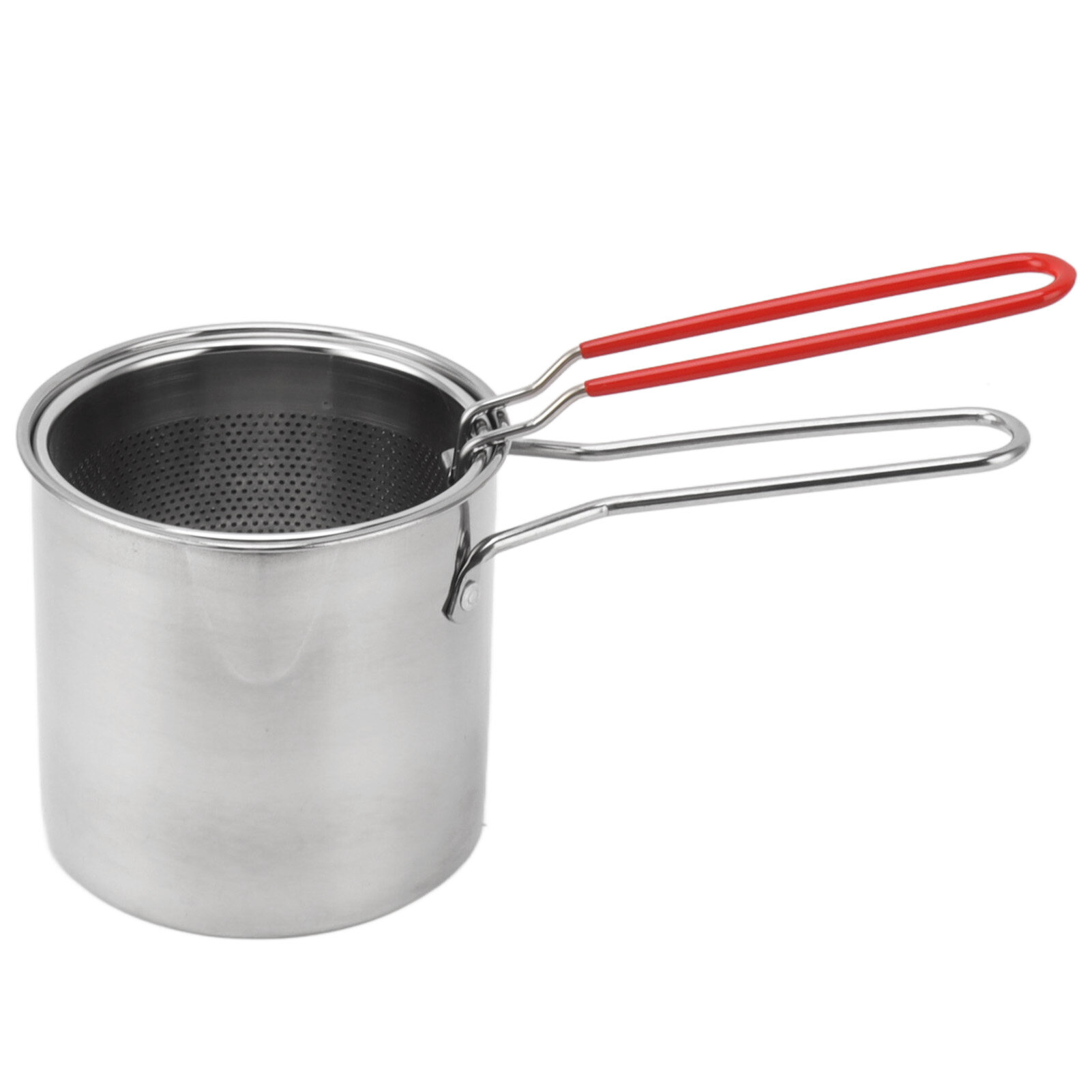 Купить Deep Fryer Pot 304 Stainless Steel Frying Pan Stock Fry with Strainer Basket and Handle for Shrimp