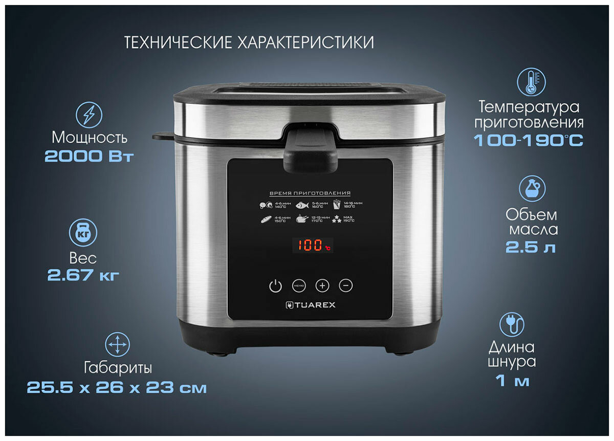 Фритюрница Tuarex AG-3501 (90627) черный/стальной интересное: