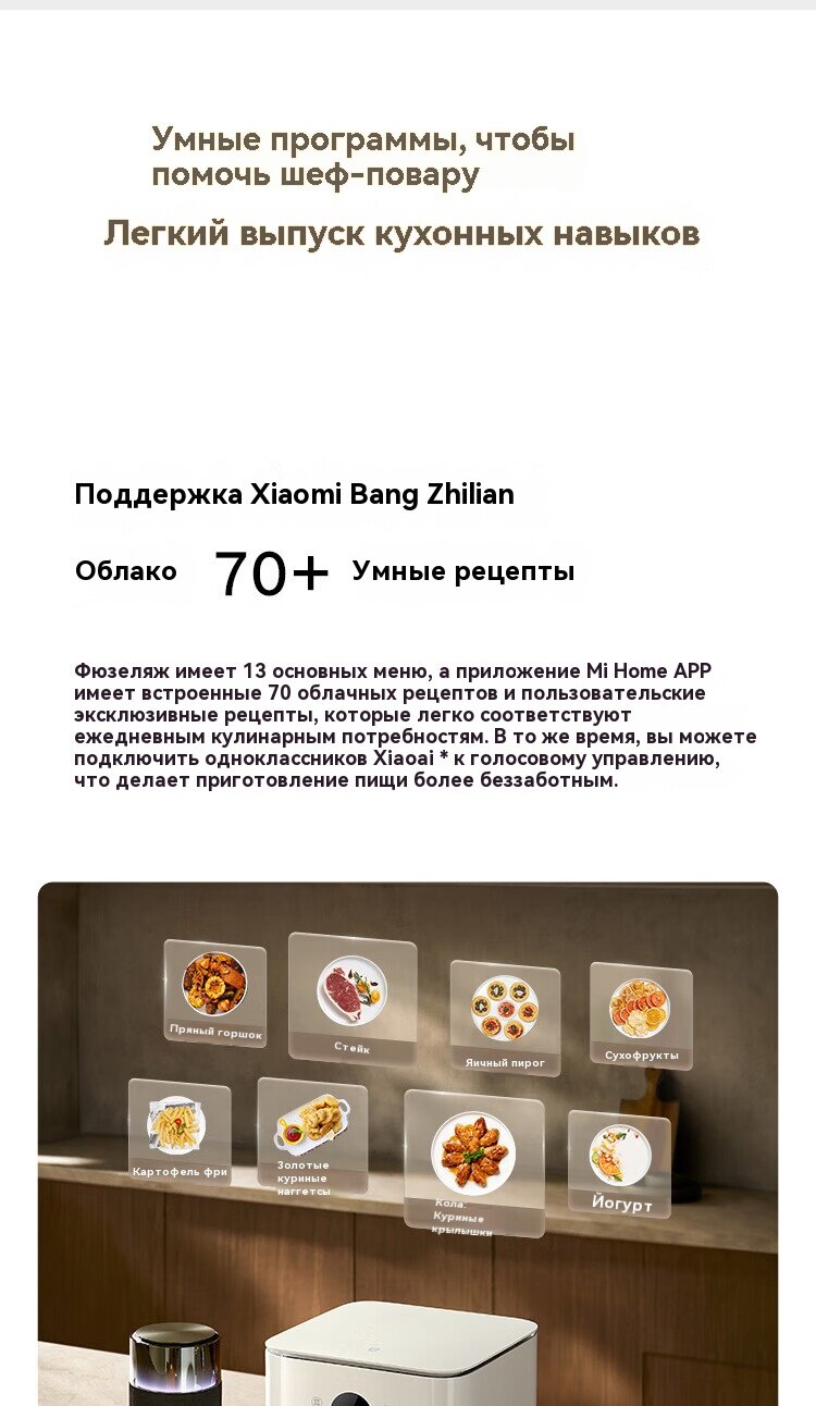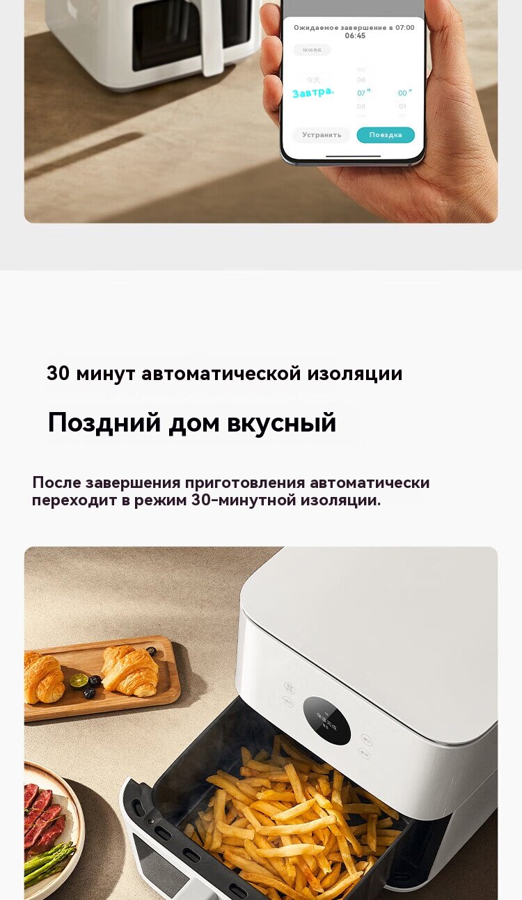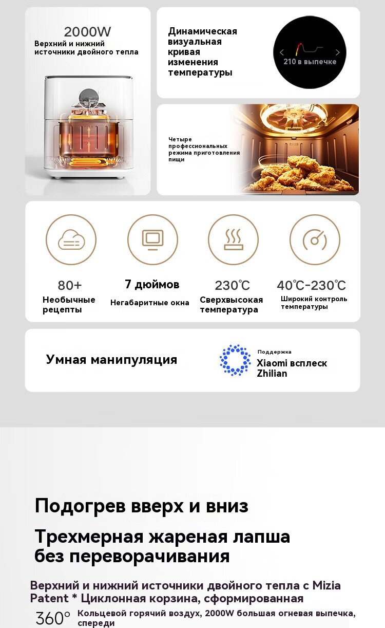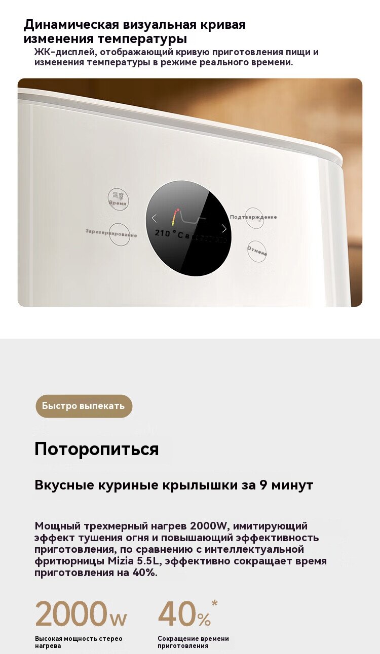 Аэрофритюрница Xiaomi Mijia P1, 6,5л, мощность 2000Вт, белая интересное: