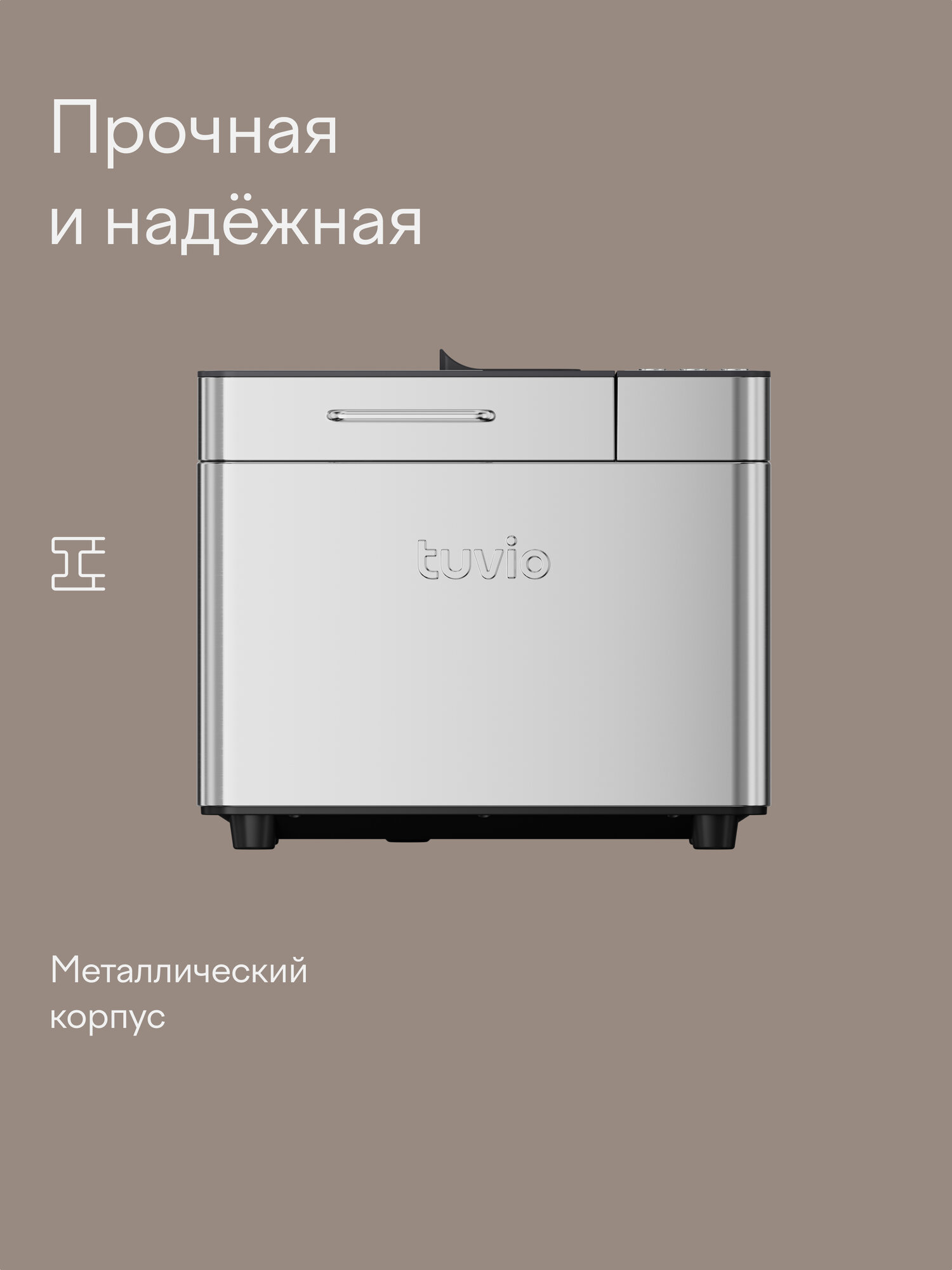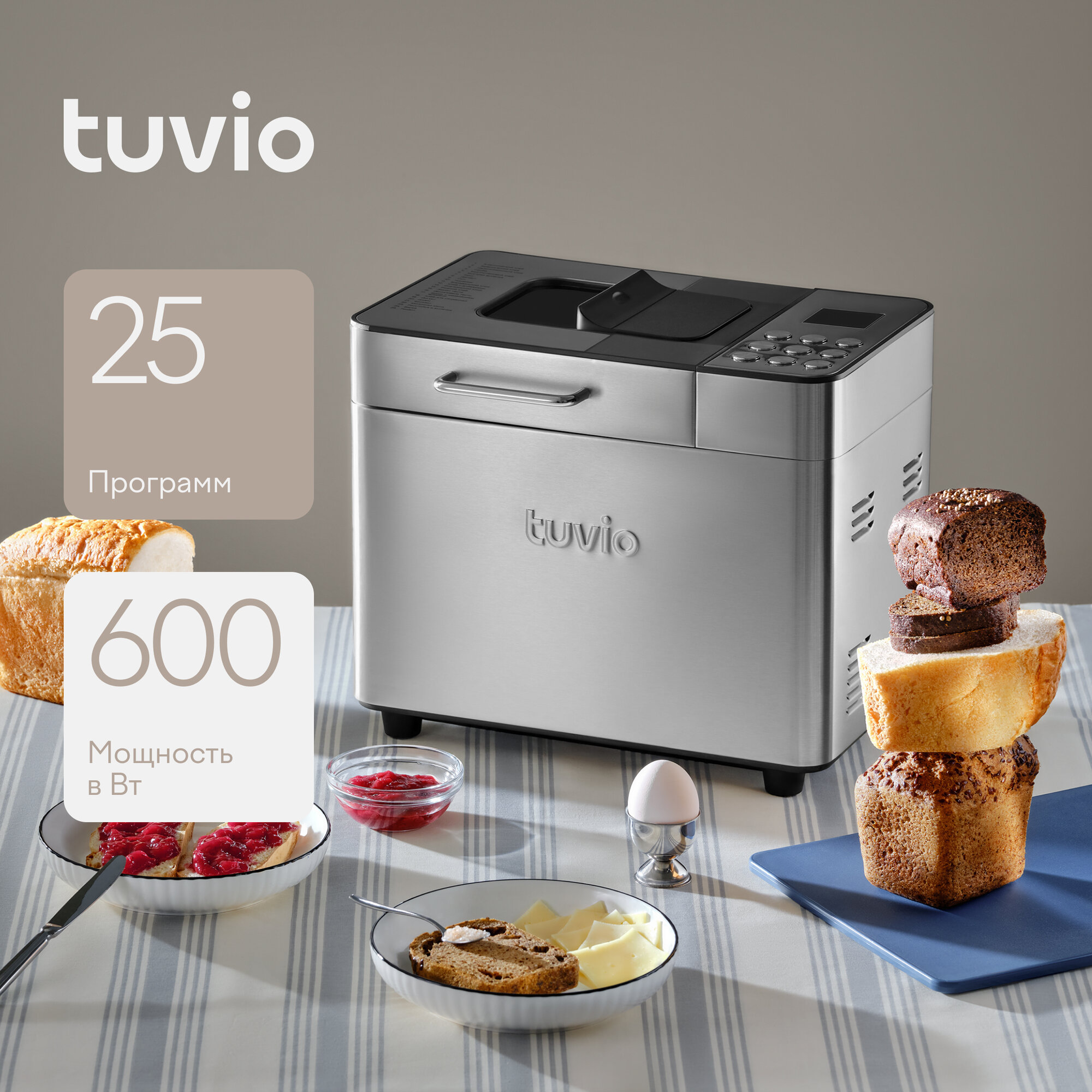 Хлебопечка с 25 автопрограммами и диспенсером для орехов Tuvio TBM02, серая интересное: