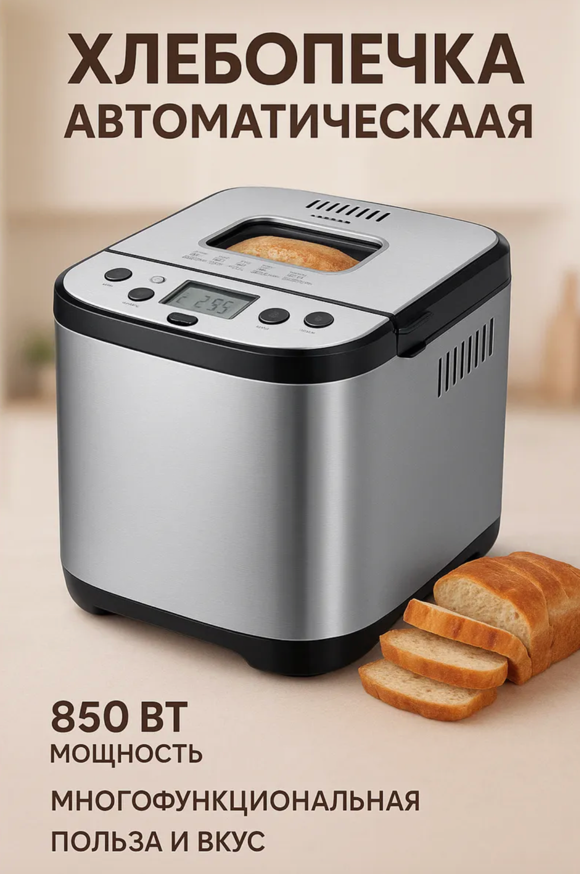Хлебопечь Haley HY-2602, нержавеющая сталь, 10 программ, мощность 600Вт интересное: