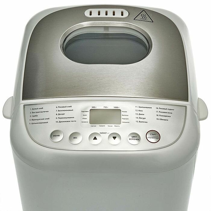 | Программы | йогурт / сладкая выпечка / Безглютеновый хлеб / Быстрый хлеб / Выпечка / Десерт / Дрожжевое тесто / Французский хлеб / Цельнозерновой хлеб |