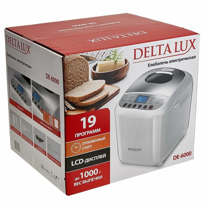 Хлебопечь электрическая 600 Вт, 500/750/1000 г, 19 программ DELTA LUX DE-6000 белая интересное: