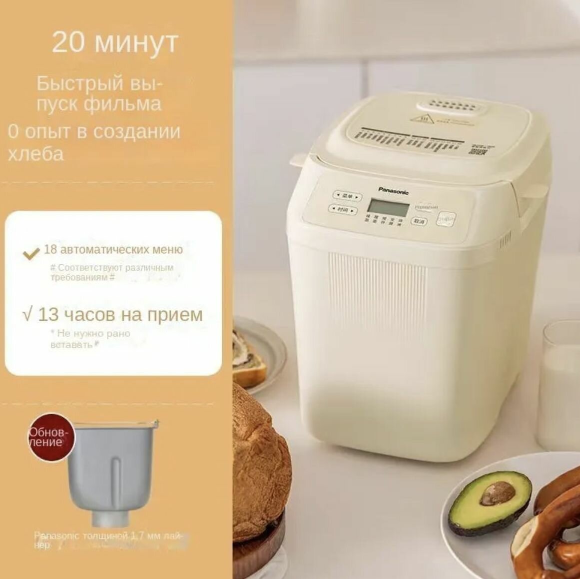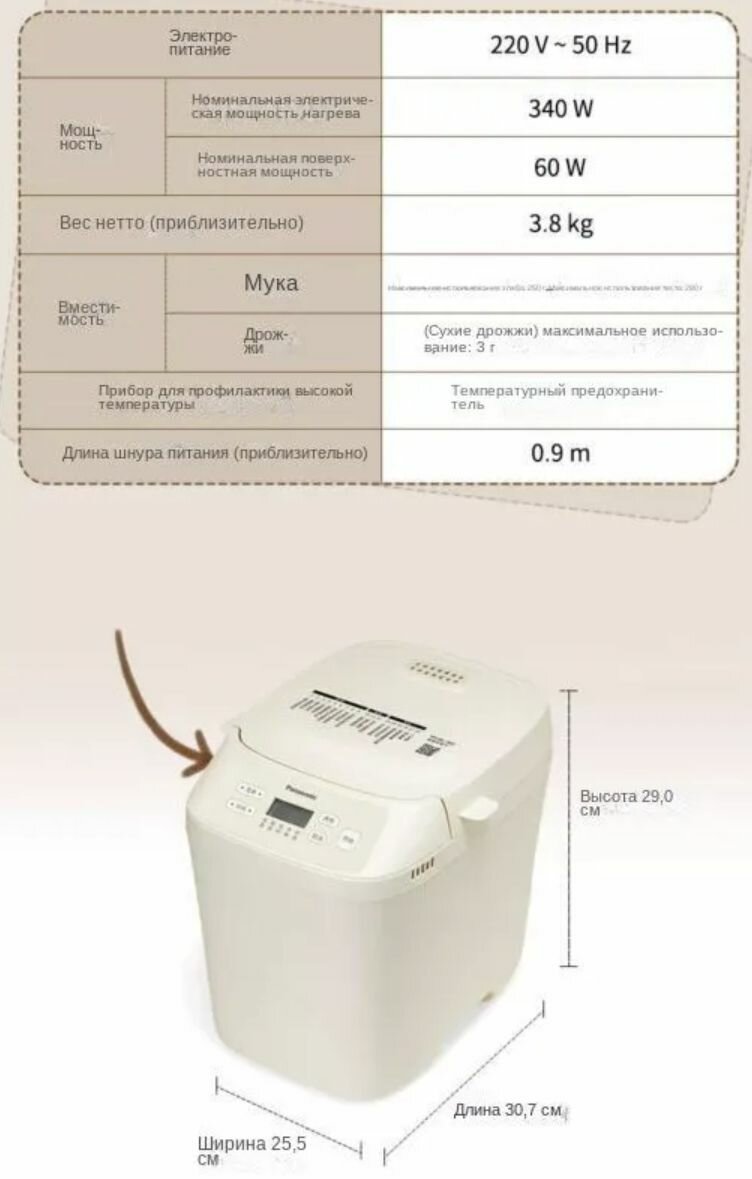 Panasonic Хлебопечка Интеллектуальная функция замешивания теста PN100 500 Вт, программ 18 интересное:
