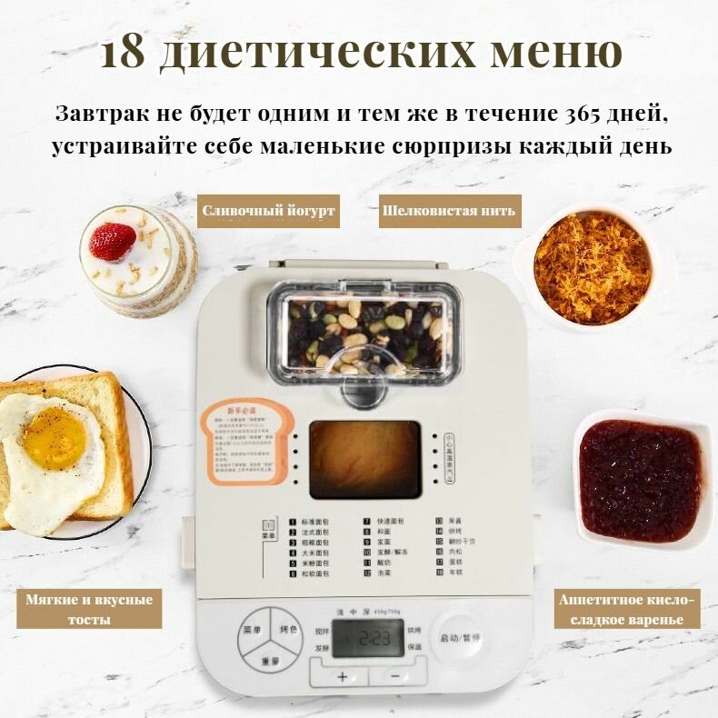 Хлебопечка с замесом теста , мощность 450 Вт, 18 автоматических программ, вес выпечки 450/750 г, отложенный старт до 13 часов, тестомешалка интересное: