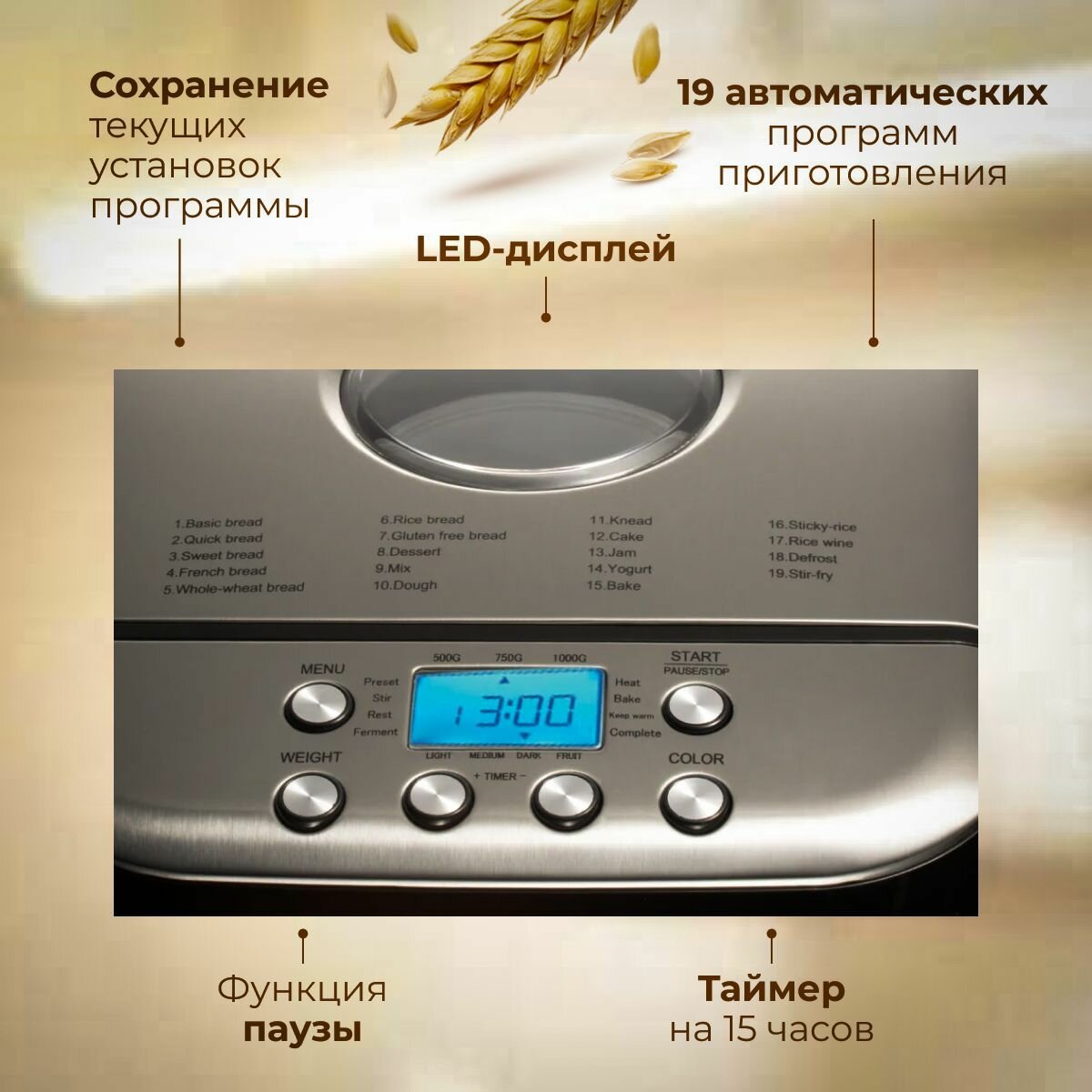 Хлебопечка с замесом теста электрическая, 19 программ интересное: