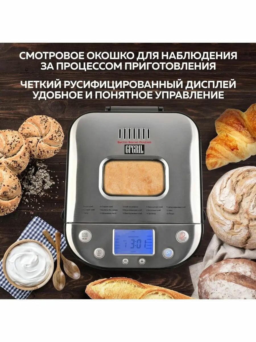 Хлебопечка, сенсорная хлебопечка, вместимость 1000 грамм, мощность 710 Вт, 15 программ интересное: