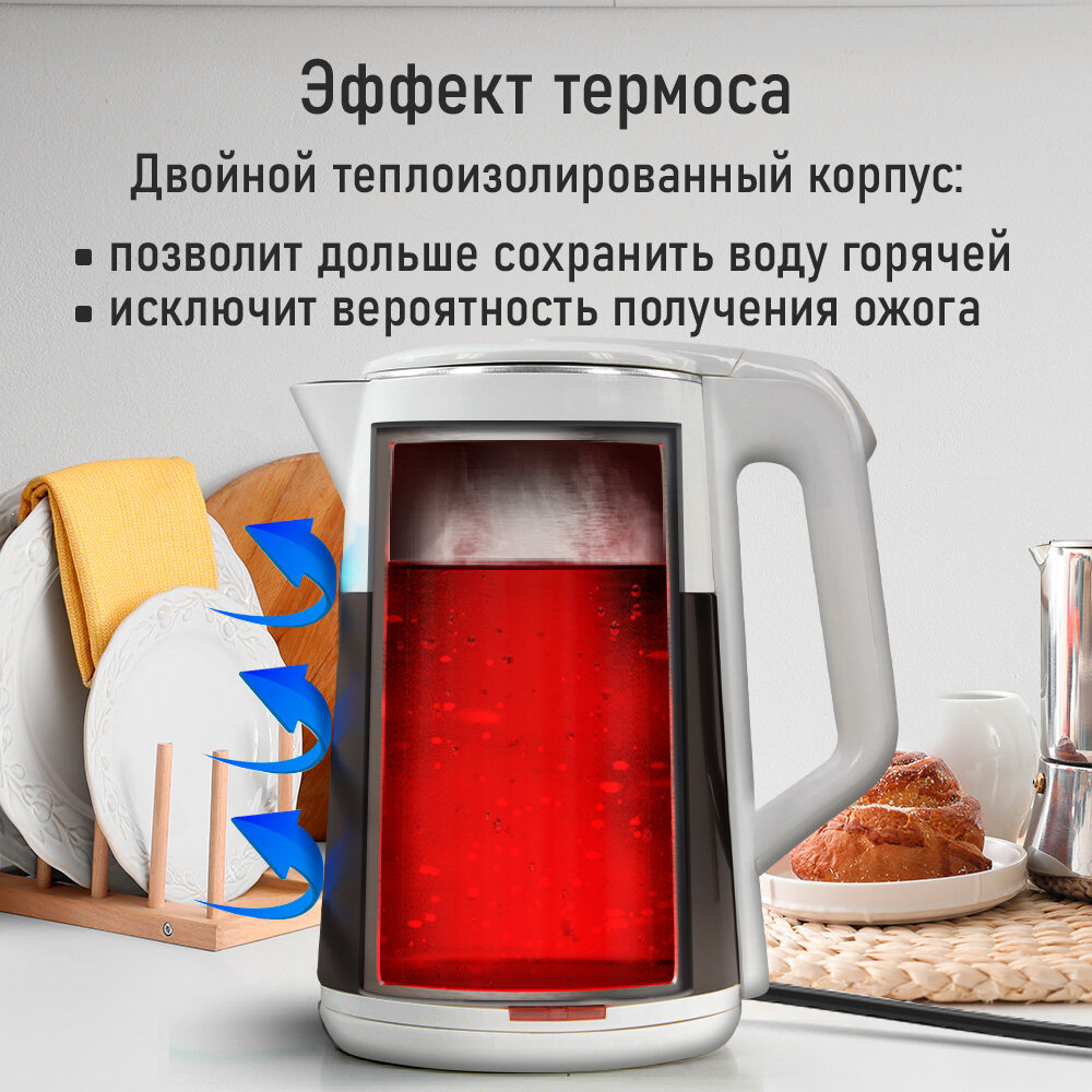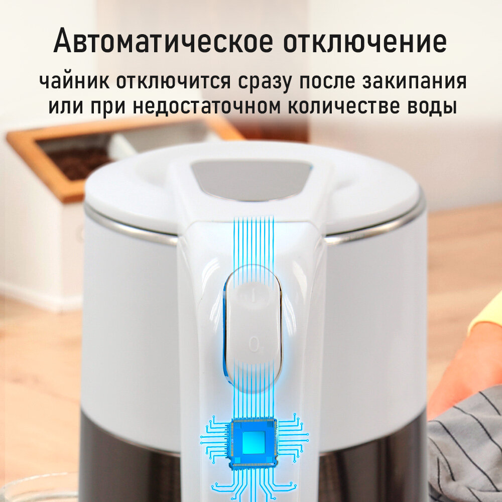 Чайник LUMME LU-4108, 2.2л, белый, с термоэффектом, вращение на 360°
