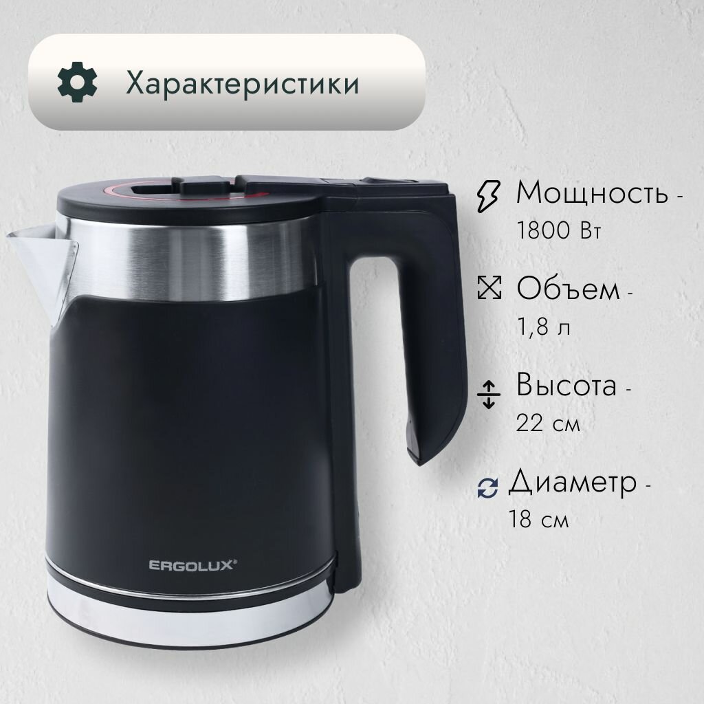 Чайник электрический металлический 1,8л / Ergolux / (1800Вт, 240В), черный интересное: