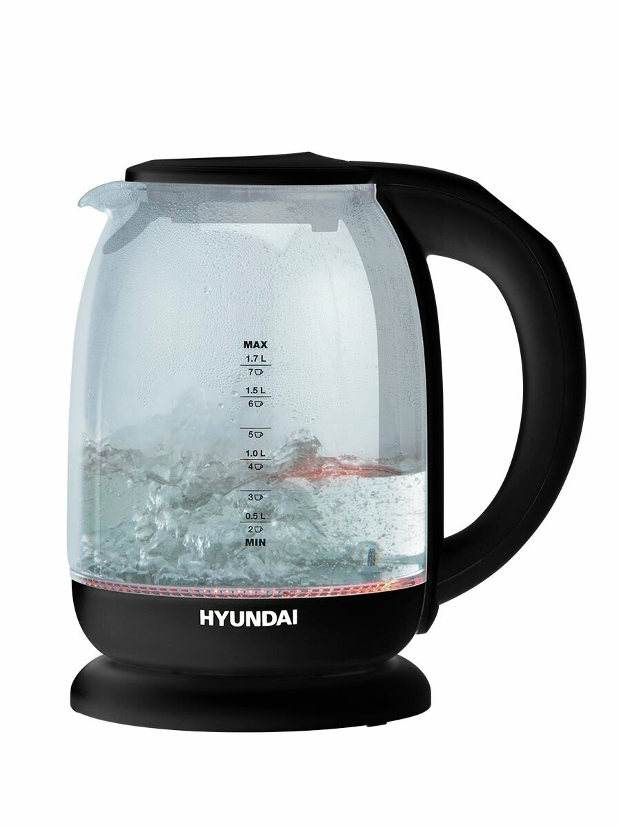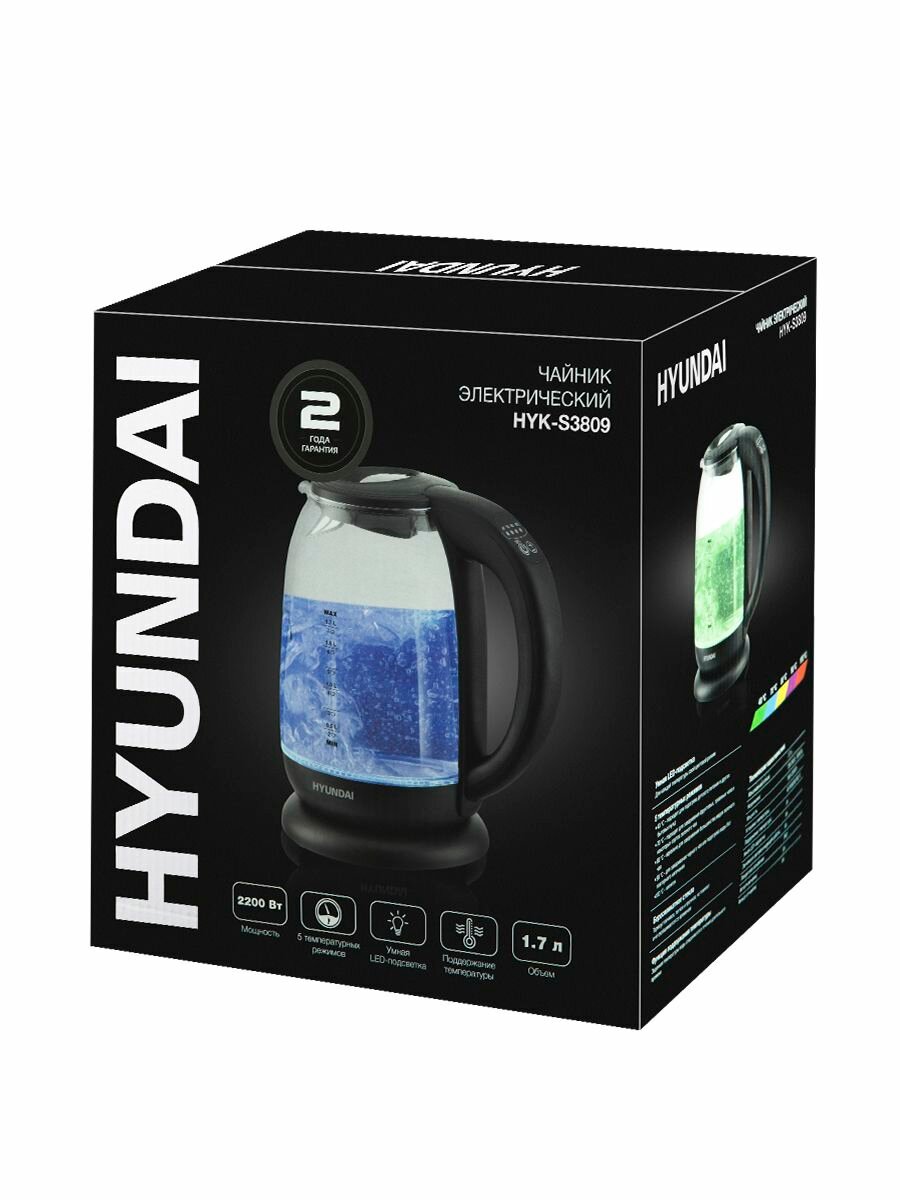 Купить Чайник электрический Hyundai HYK-S3809 черный, объём 1.7л, мощность 2200Вт, материал корпуса: стекло