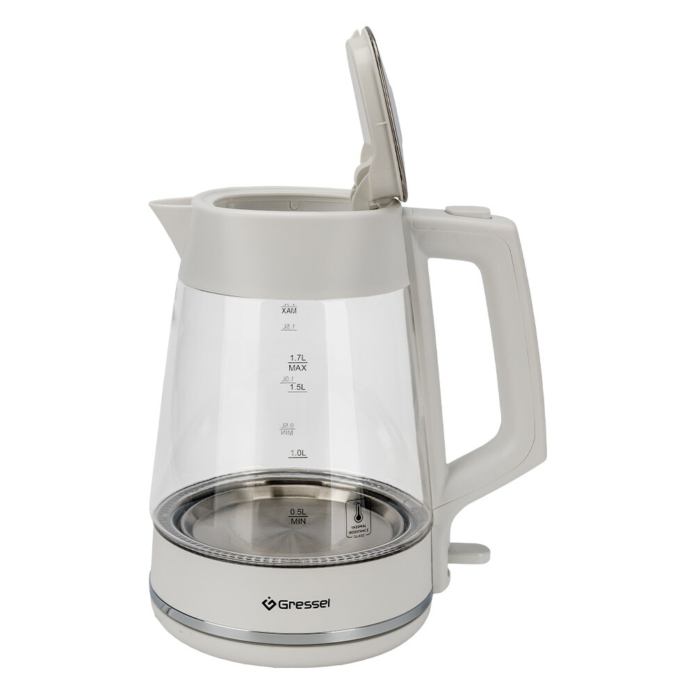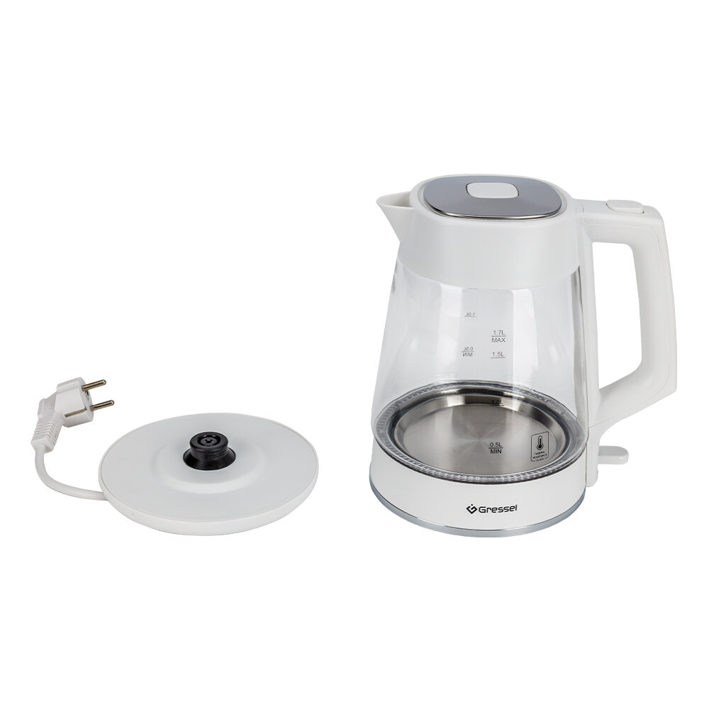 Купить Электрический чайник Gressel GRK-1114, 1.7л, 2200Вт, защита от перегрева, контроллер Strix, термостойкое стекло, белый