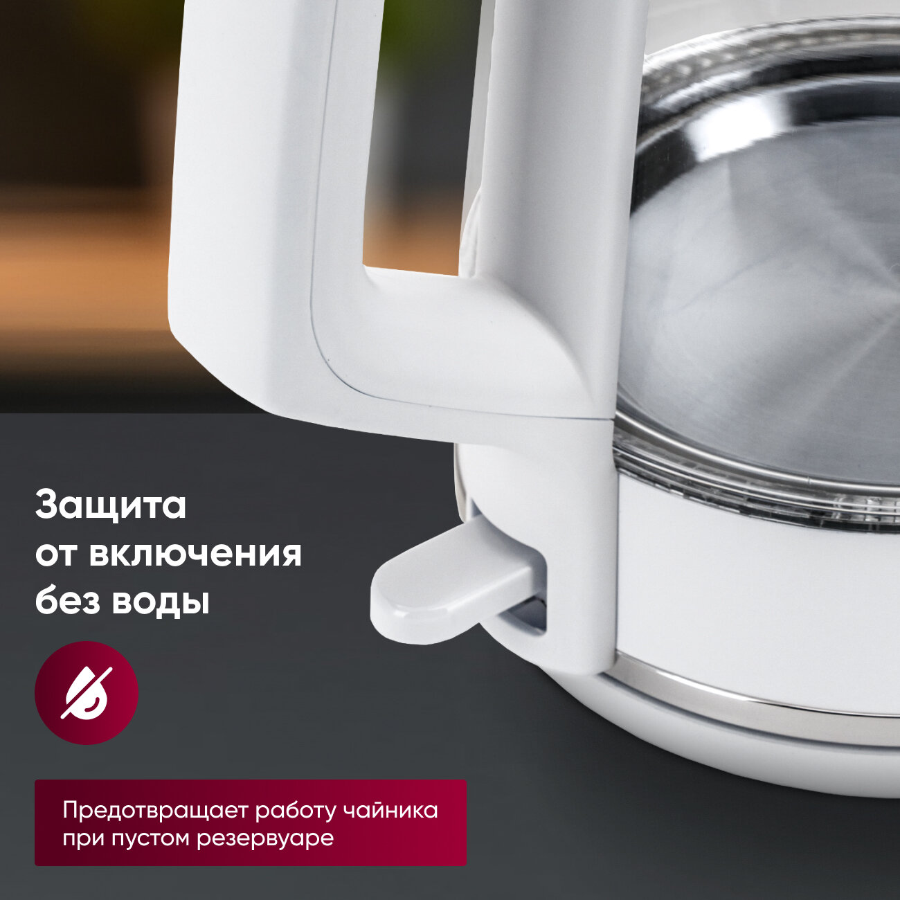 | Безопасность | блокировка включения без воды / отключение при снятии с подставки |