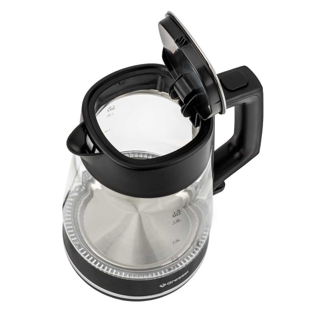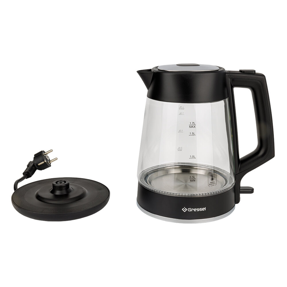 Купить Электрический чайник Gressel GRK-1115, 1.7л, 2200Вт, защита от перегрева, контроллер Strix, подсветка, термостойкое стекло, черный