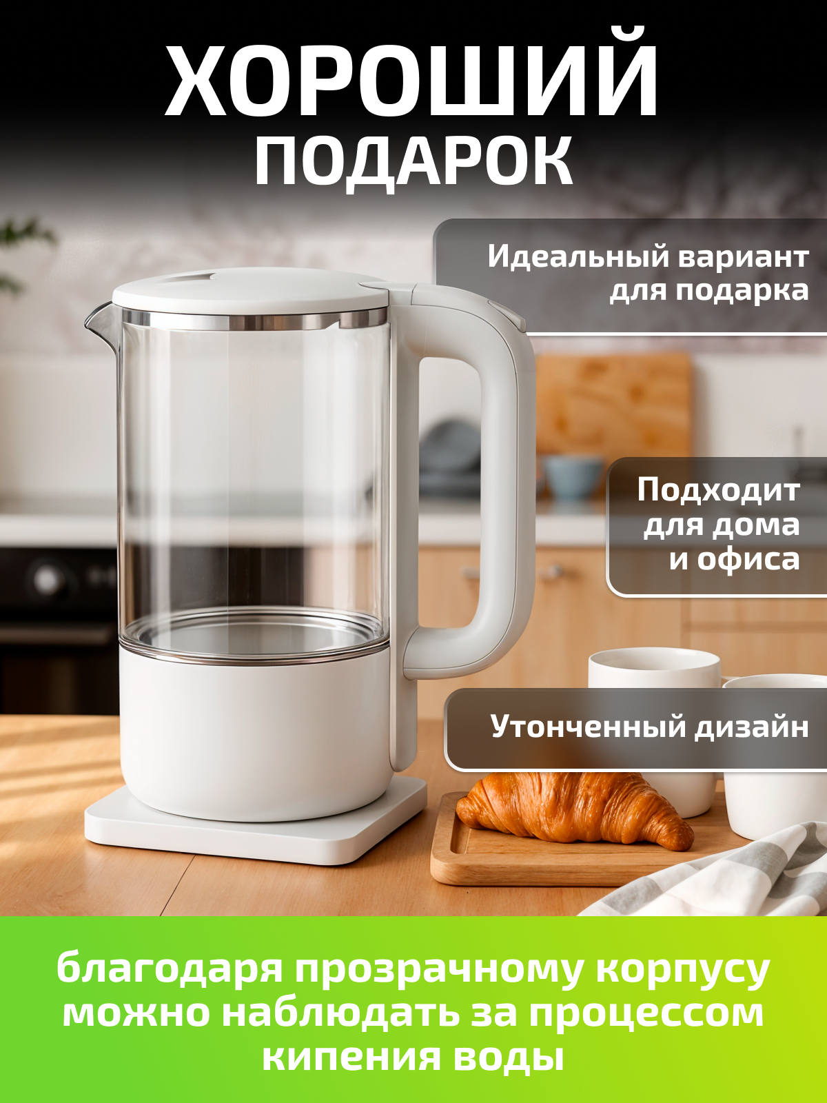 Электрический чайник EnviTec Global, 1800 Вт, пластиковый корпус, вместительный белый