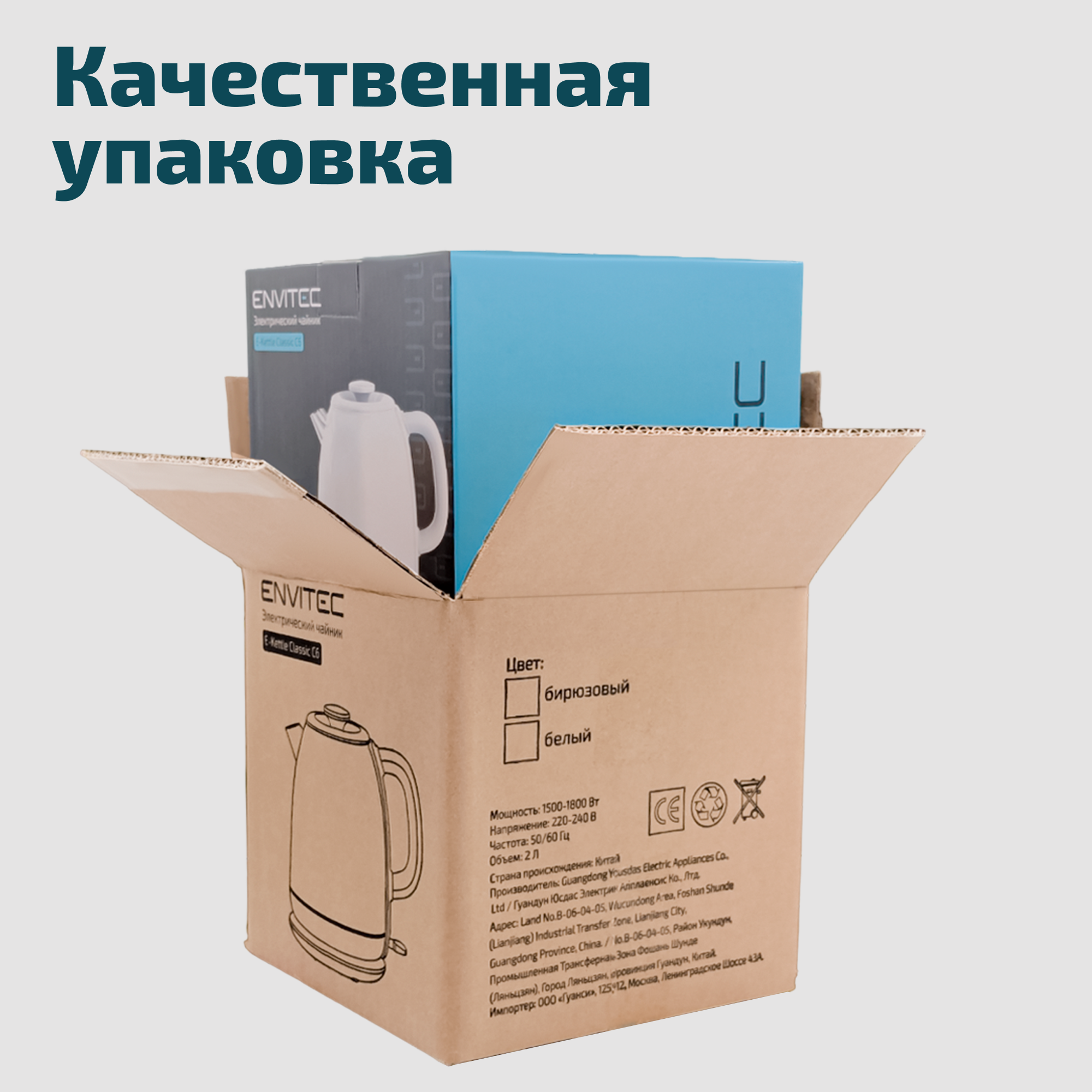 Купить Электрический чайник EnviTec Global, 1800 Вт, пластиковый корпус, вместительный белый