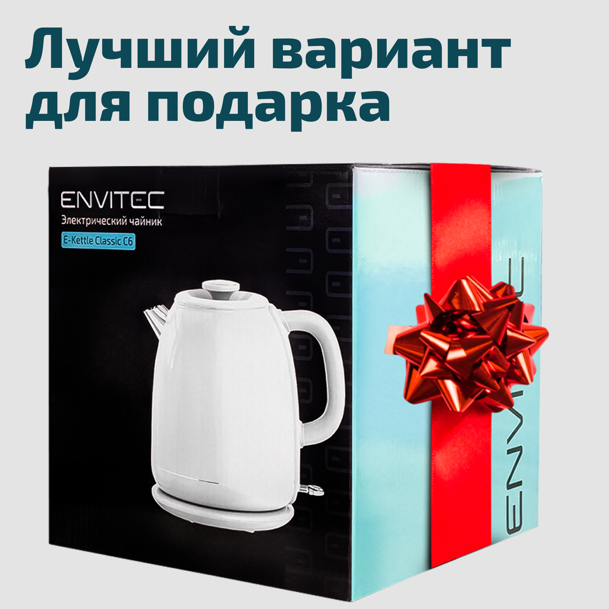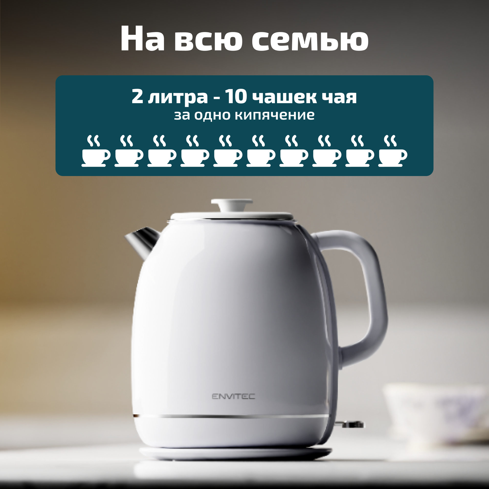 СохранитьЭлектрический чайник EnviTec Global, 1800 Вт, пластиковый корпус, вместительный белый интересное: