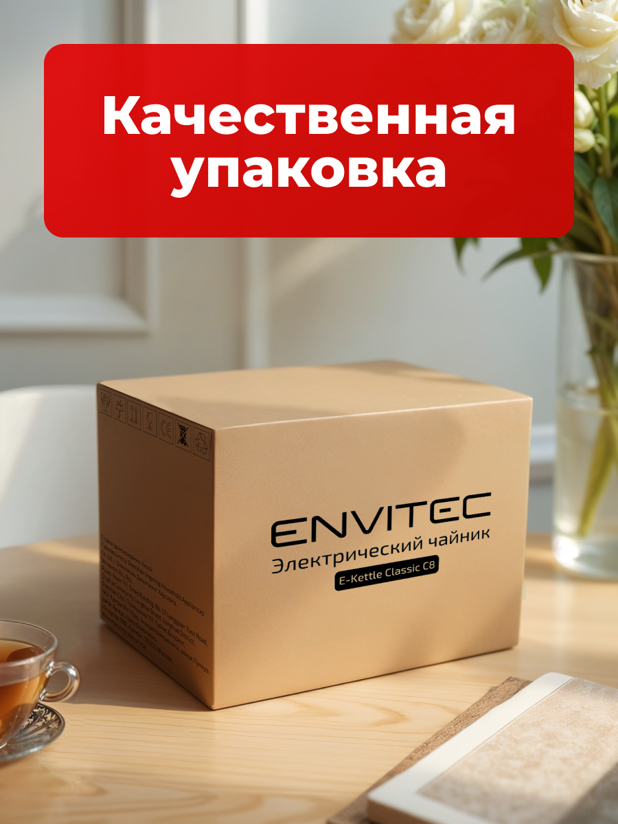Чайник EnviTec K8, 1.35 кВт, металлический, стекло, пластик, белый