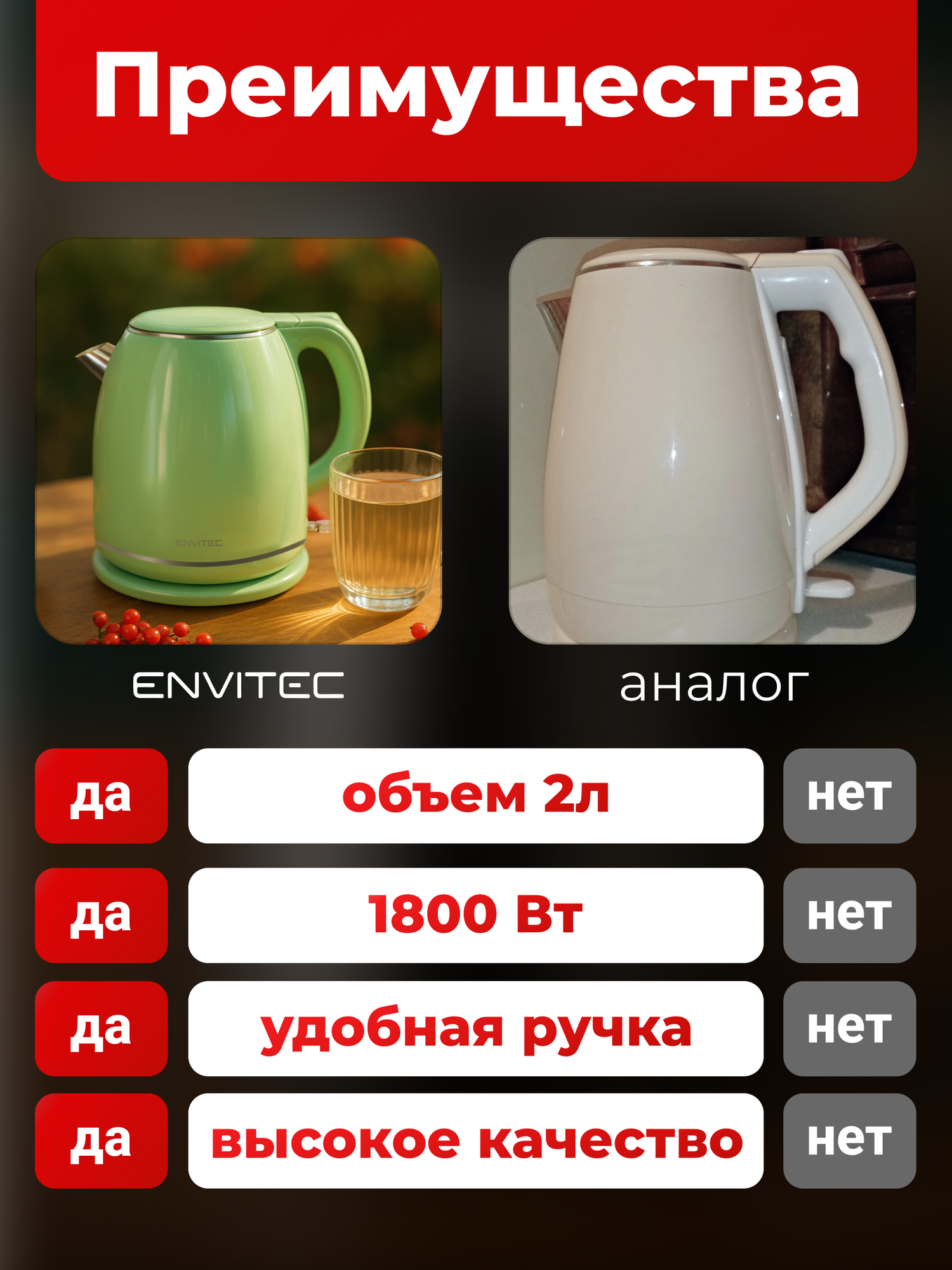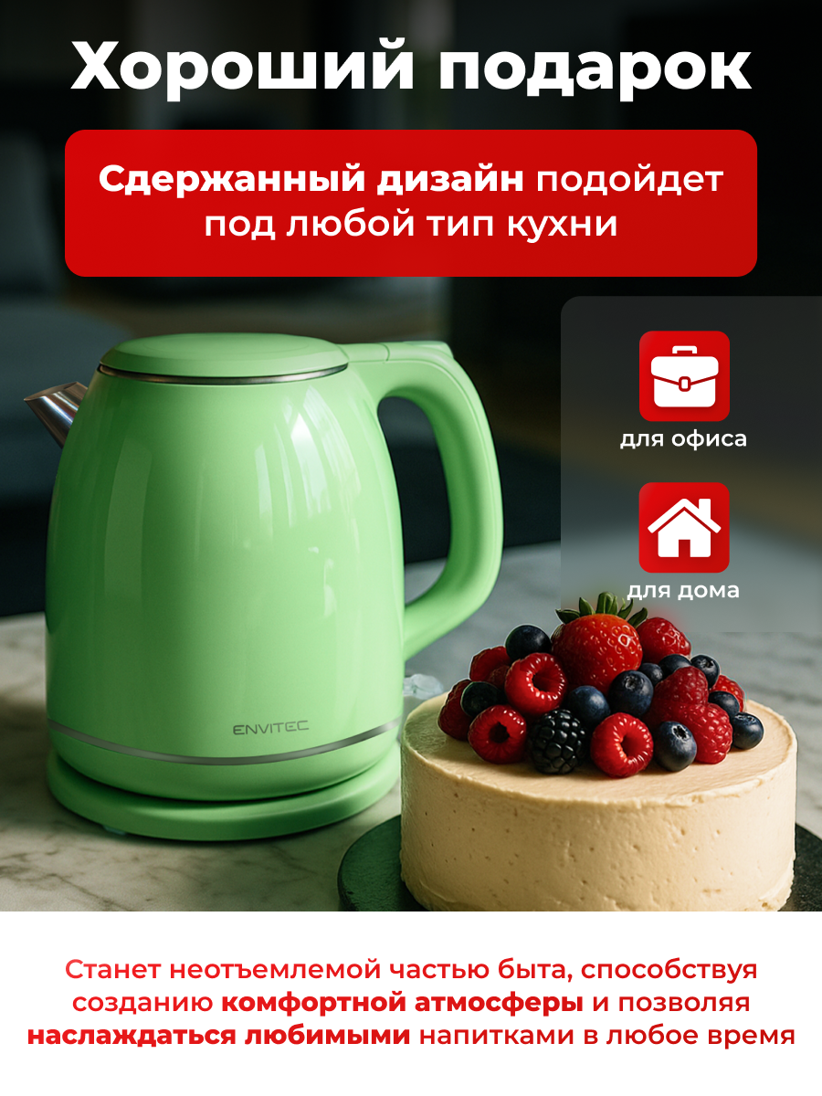 Купить Чайник EnviTec, металл/пластик, мощность 1800 Вт, объем 2л, зеленый