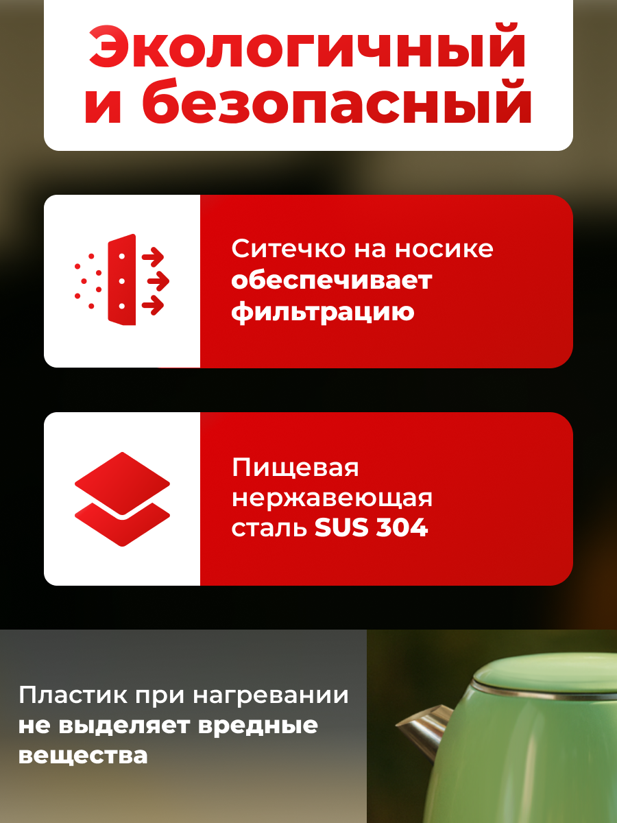 СохранитьЧайник EnviTec, металл/пластик, мощность 1800 Вт, объем 2л, зеленый интересное: