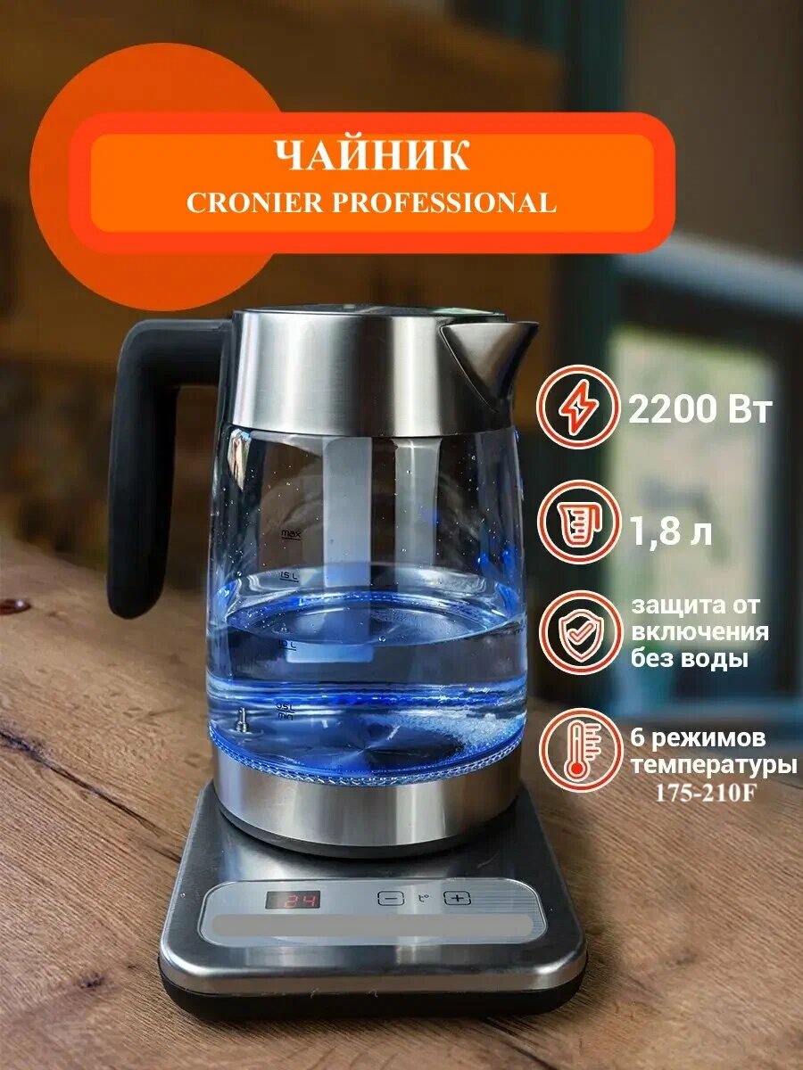 Чайник электрический стеклянный / умный чайник на 6 режимов нагрева воды 1.8л интересное: