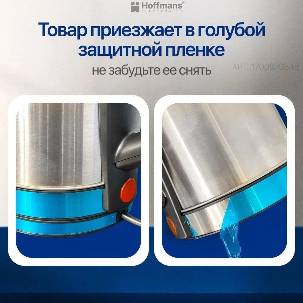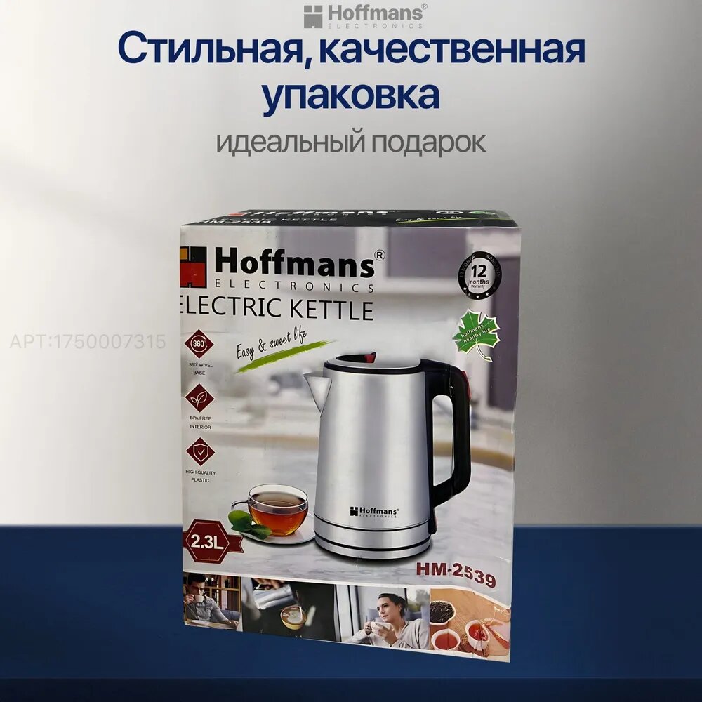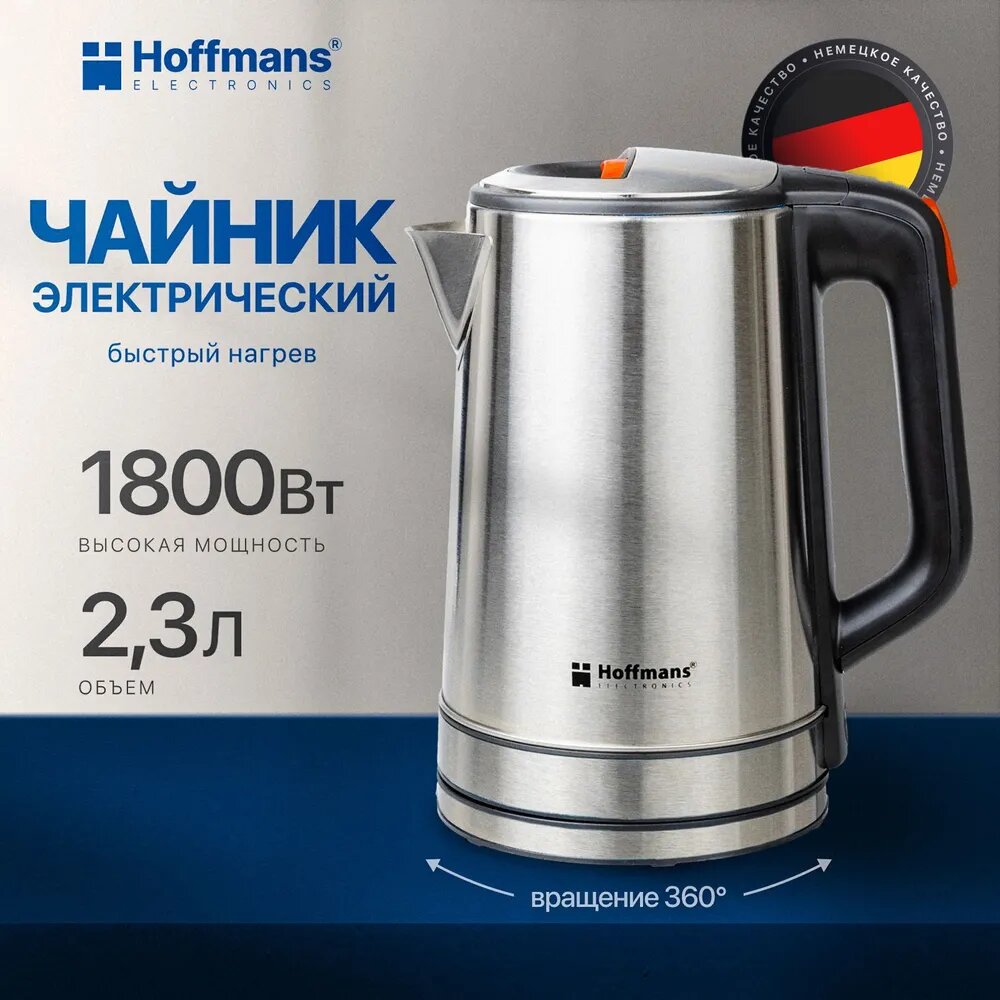 Электрический чайник Hoffmans 2.3, 1800 Bt металлический, серебристый интересное: