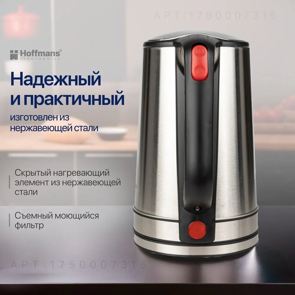 Купить Электрический чайник Hoffmans 2.3, 1800 Bt металлический, серебристый