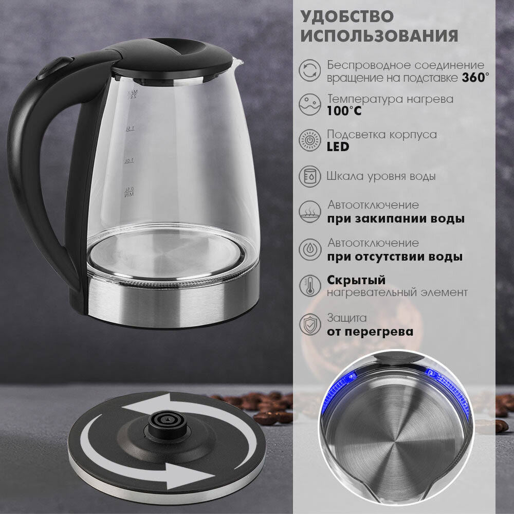 Чайник электрический Siena-6561, стеклянный, съемный фильтр-сетка