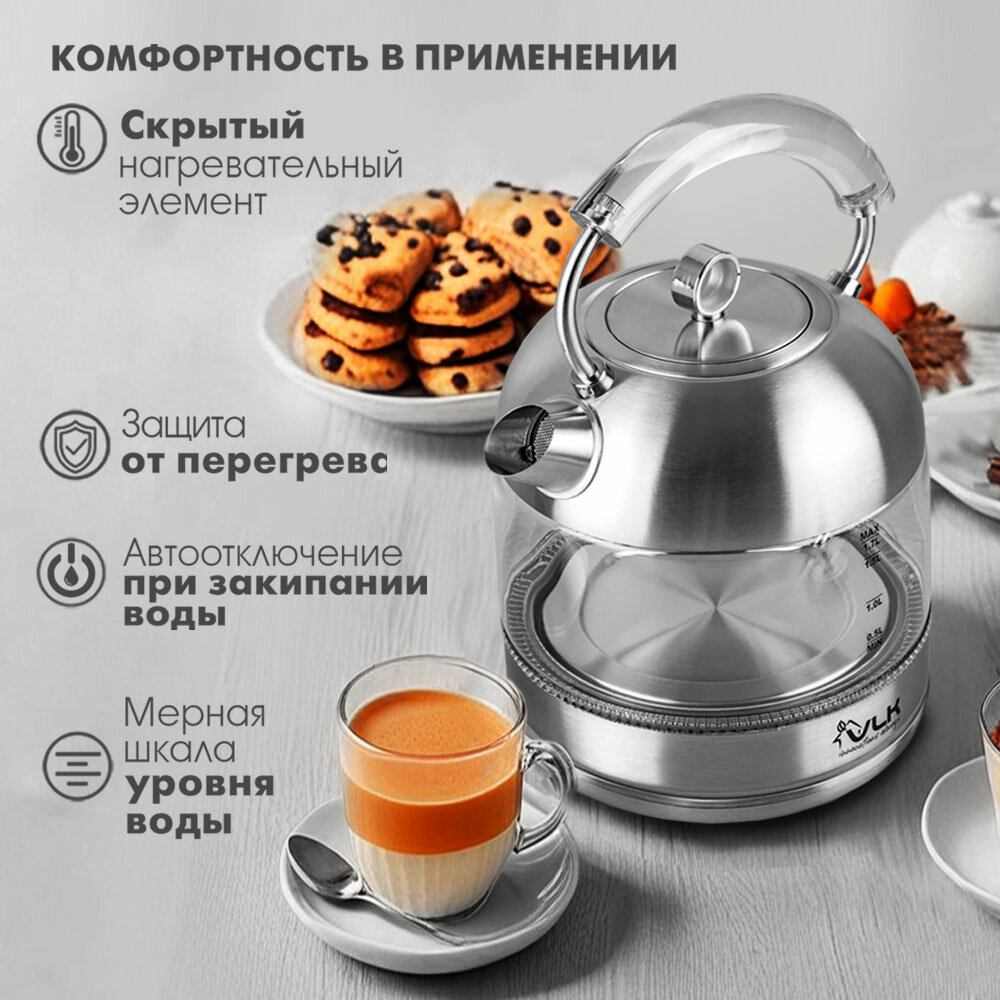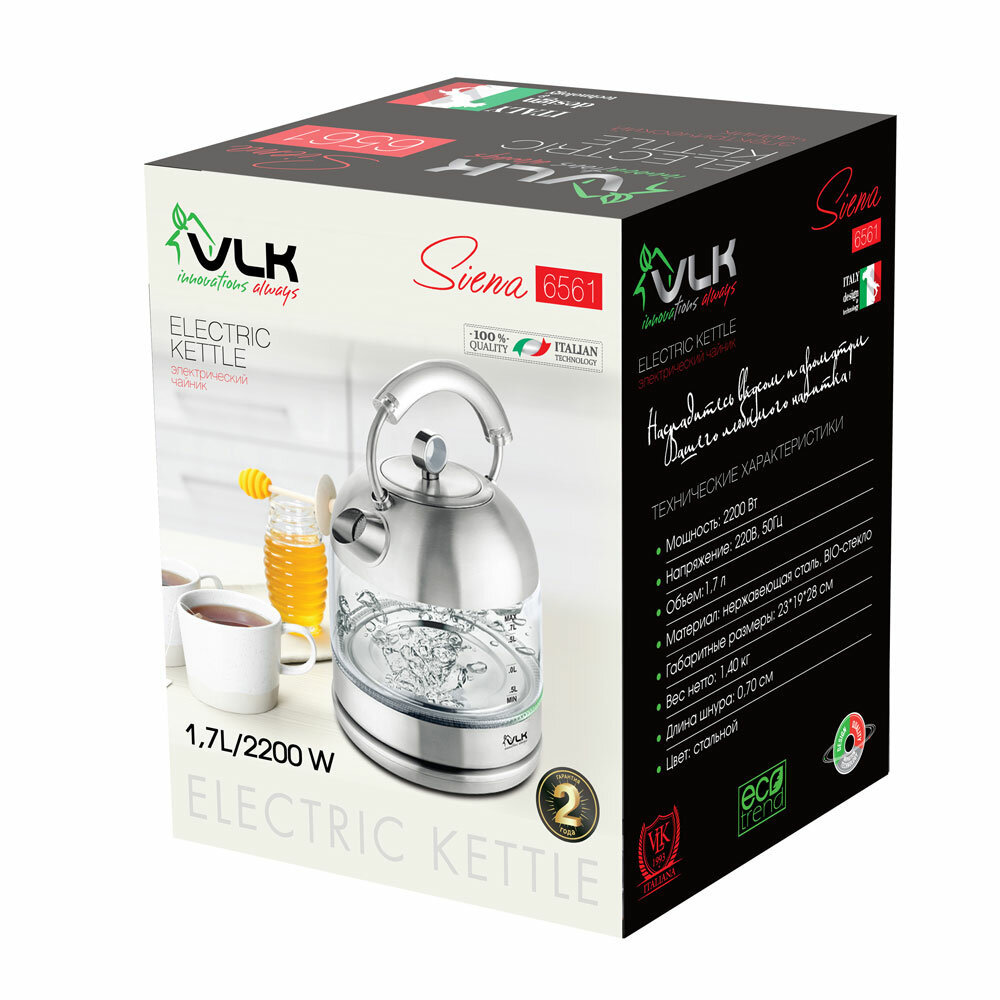 Электрический чайник VLK SIENA-6564, 2200Вт, 1,8 л, автоотключение, защита от перегрева