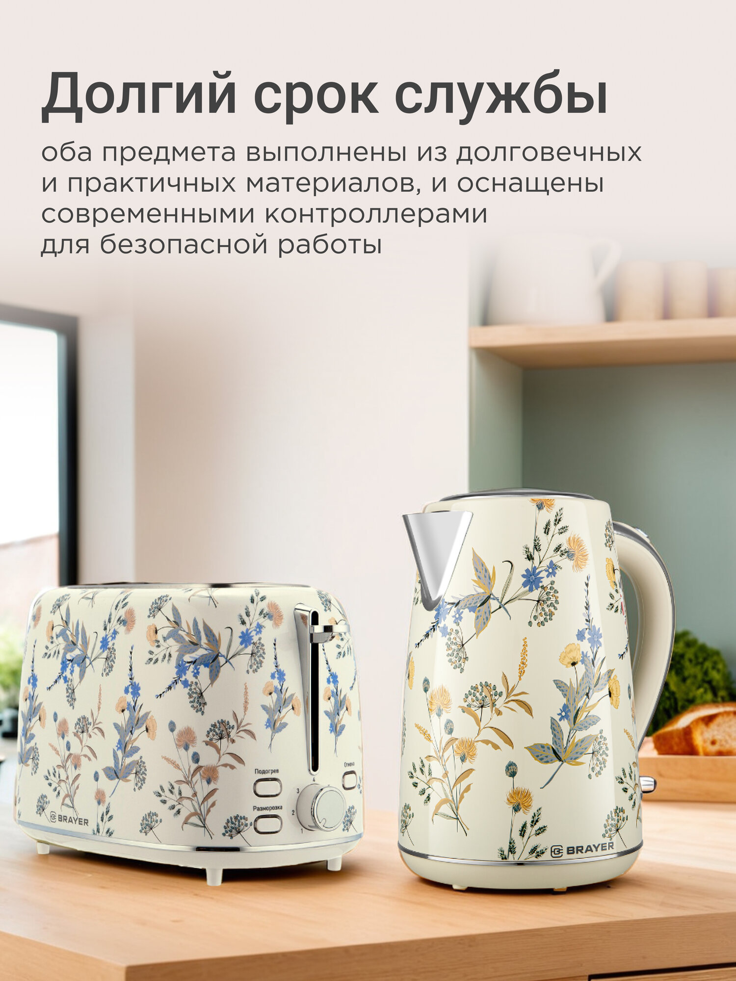 Чайник электрический BRAYER BR1083YE+ Тостер BRAYER BR2103YE интересное: