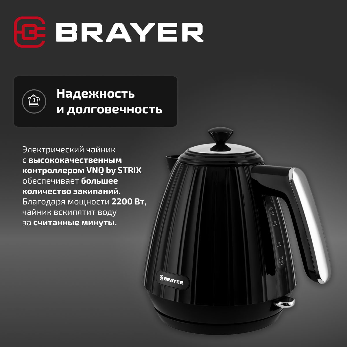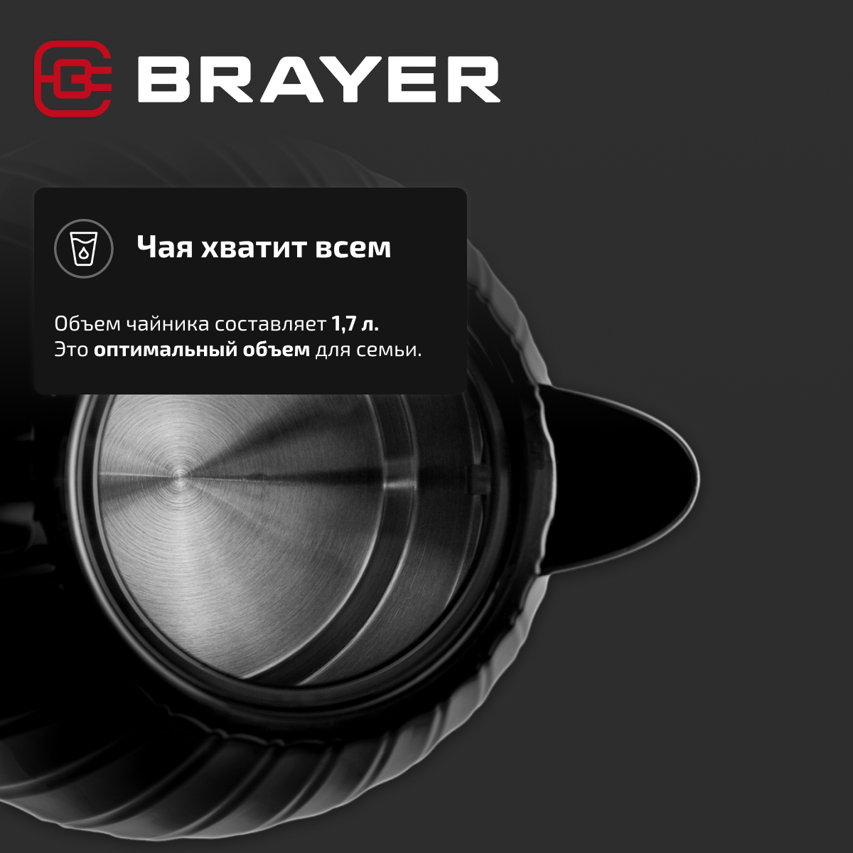 Чайник электрический 1,7 л BRAYER BR1074, 2200 W, пластик, цвет черный интересное: