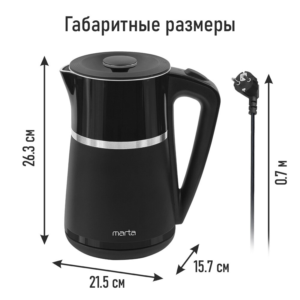 Электрический чайник MARTA MT-KT4651A черный металлический 1,8 л интересное: