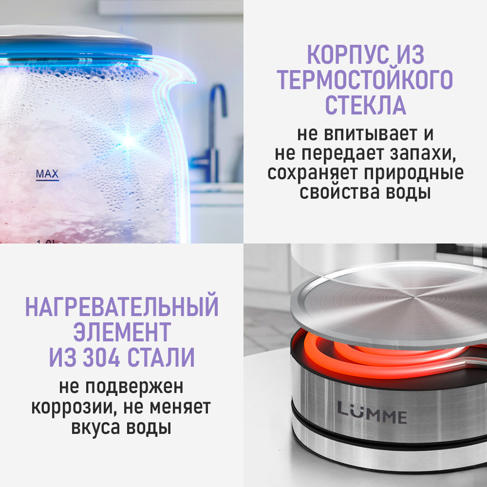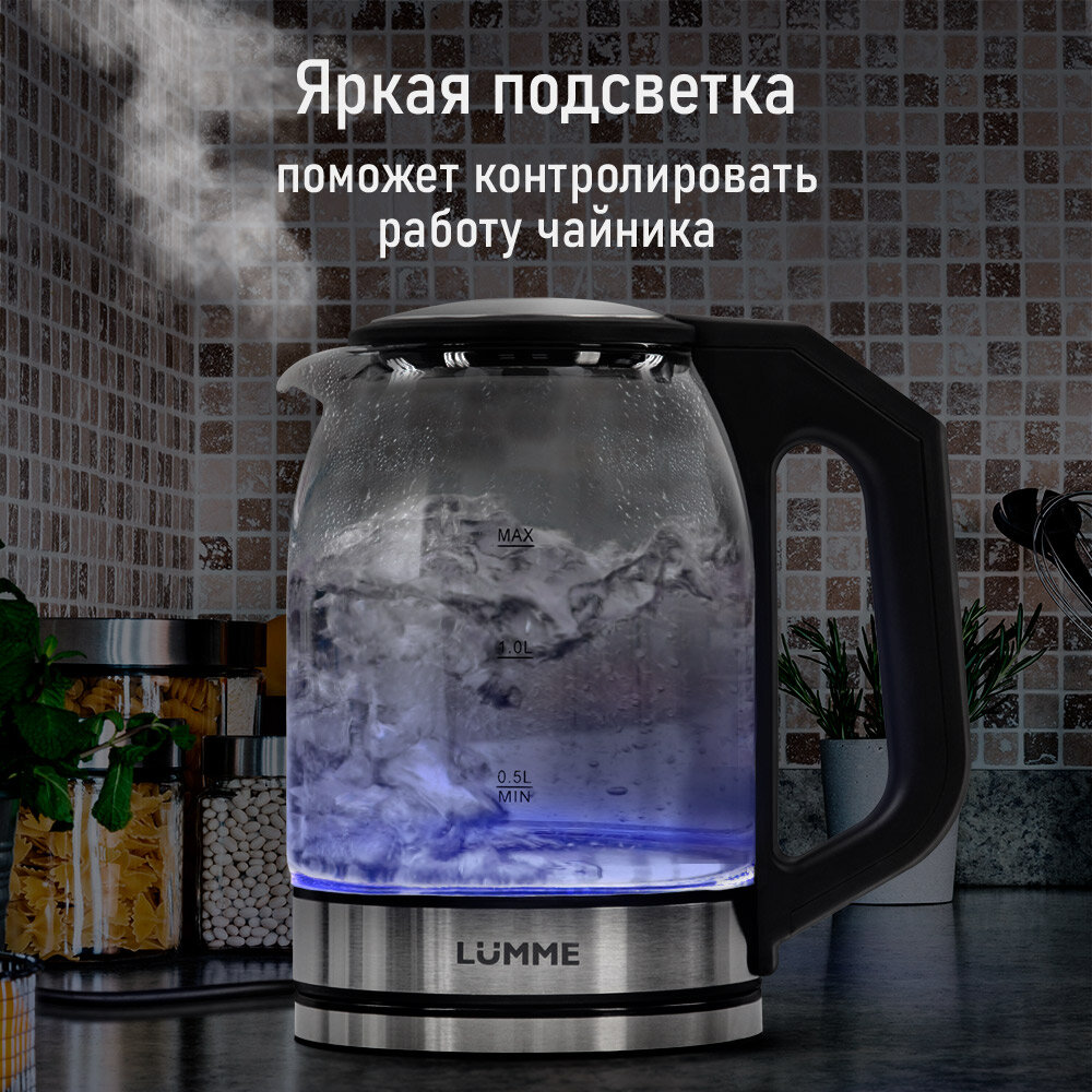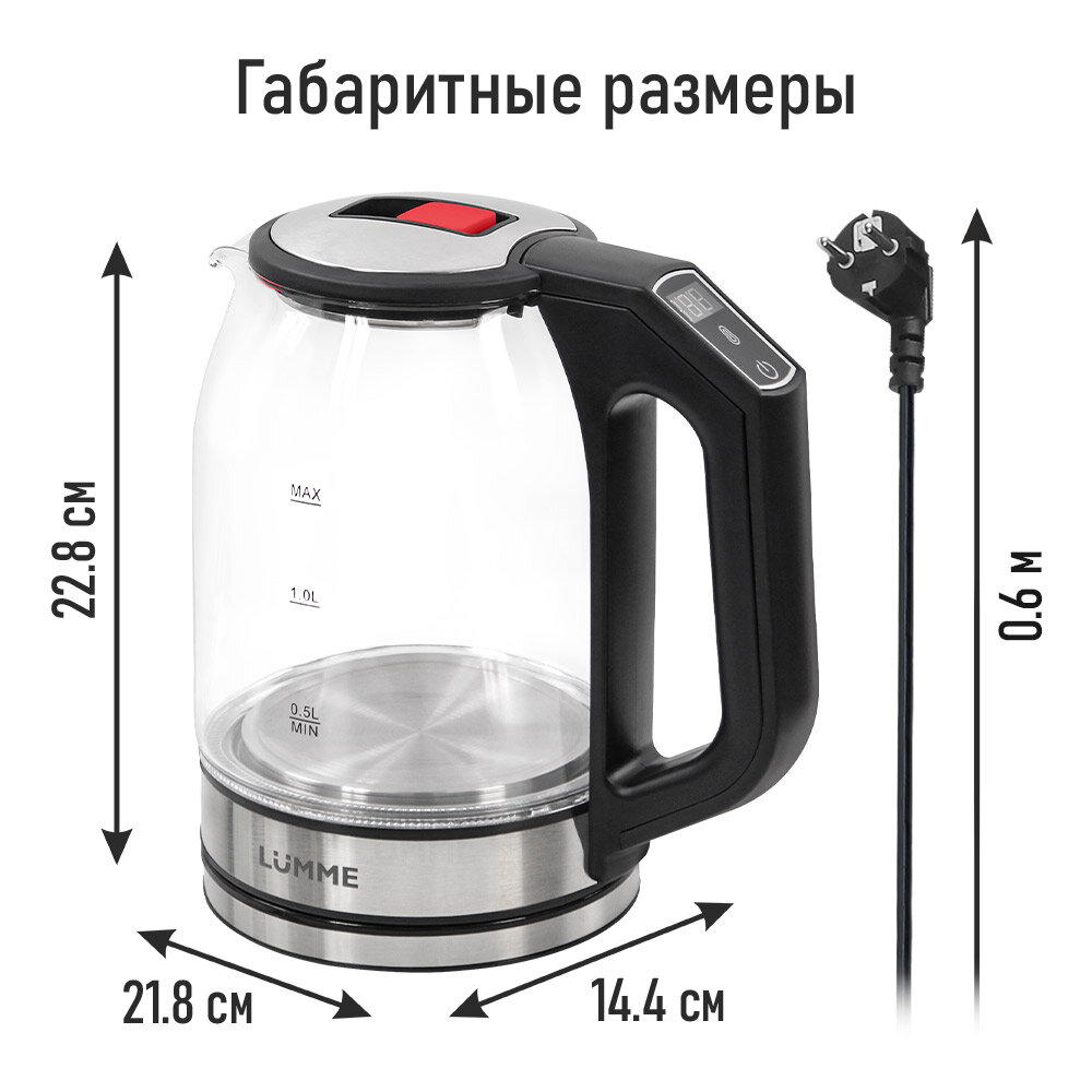 Электрический чайник LUMME LU-KT4109A черный/красный стеклянный с подсветкой, 2 л интересное: