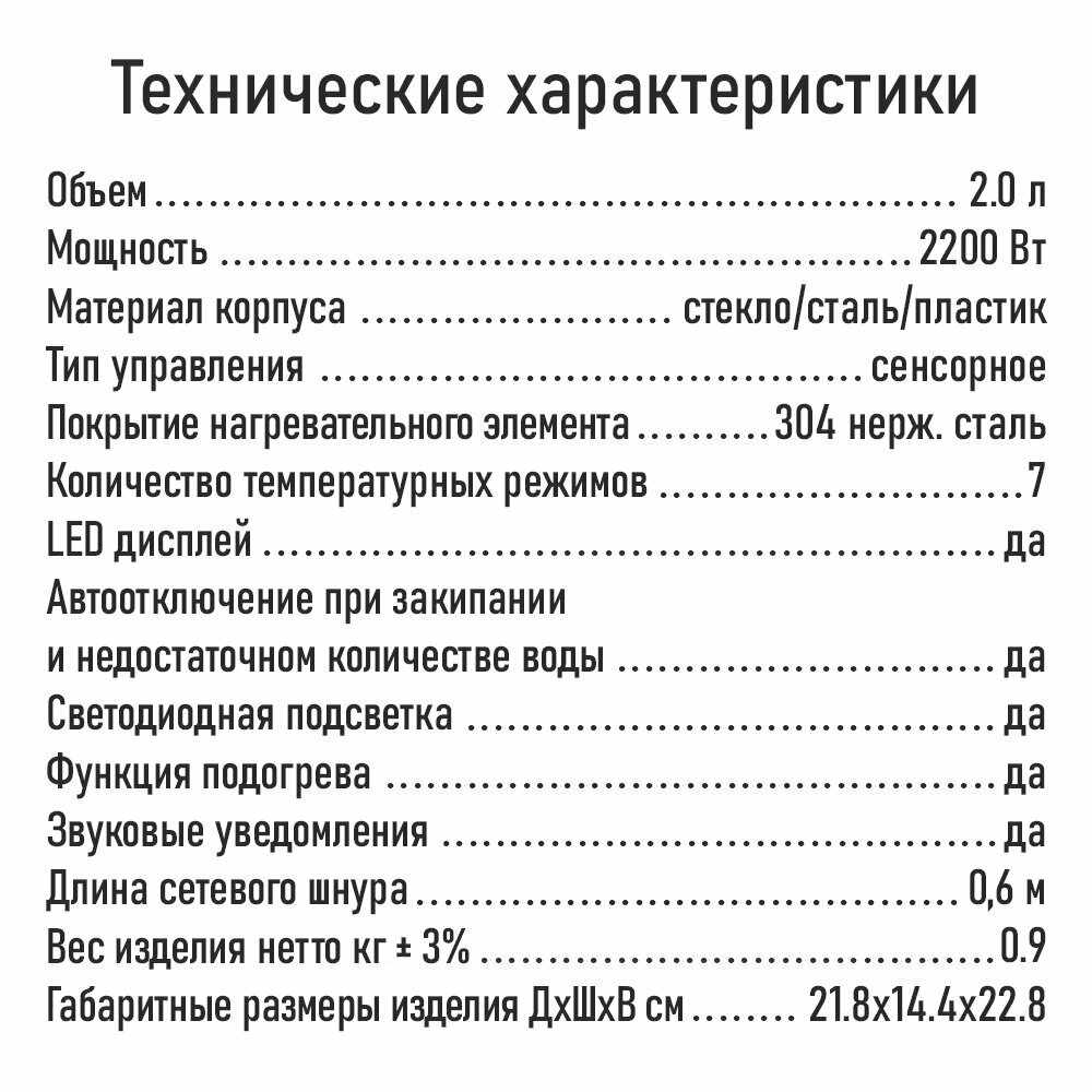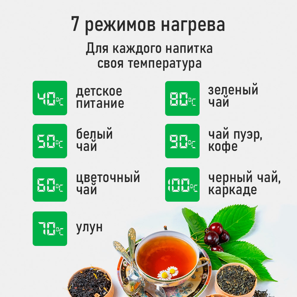 | Доп. опции термопота, чайника | вращение на подставке 360º, дисплей, индикация температуры |