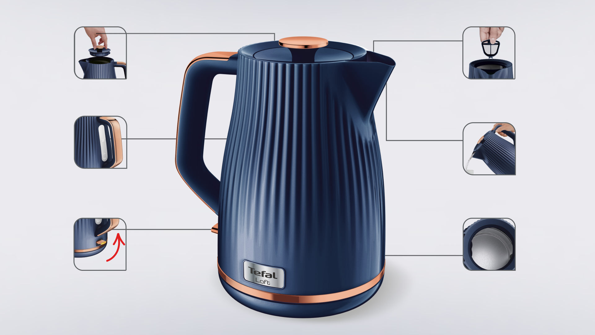 Купить Электрочайник Tefal "Loft", (KO251430) синий, мощность 2400Вт