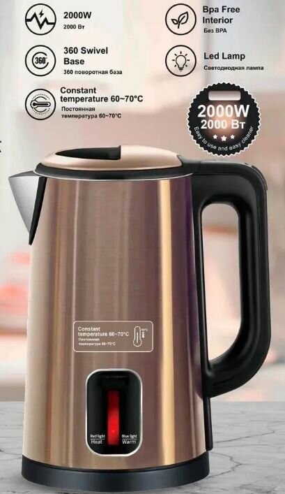 Чайник электрический 2.5 Л золотой поддержание температуры интересное: